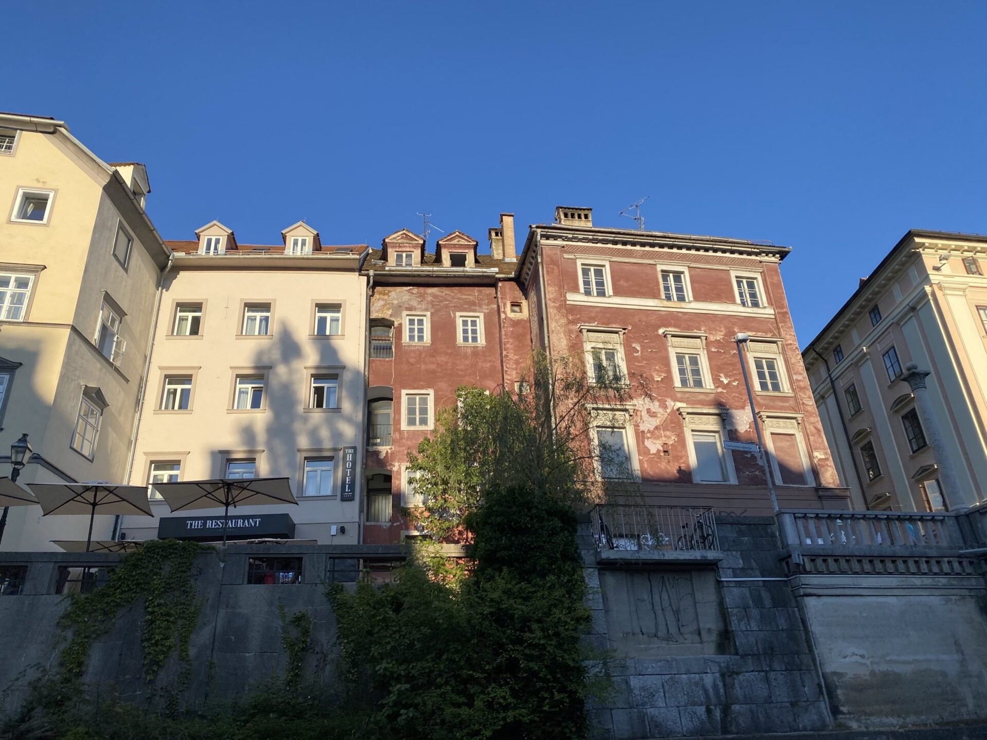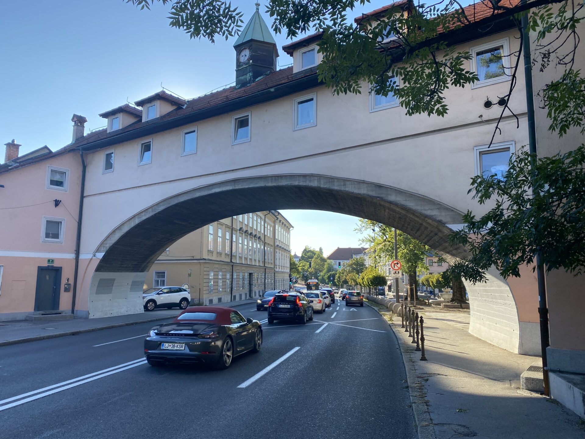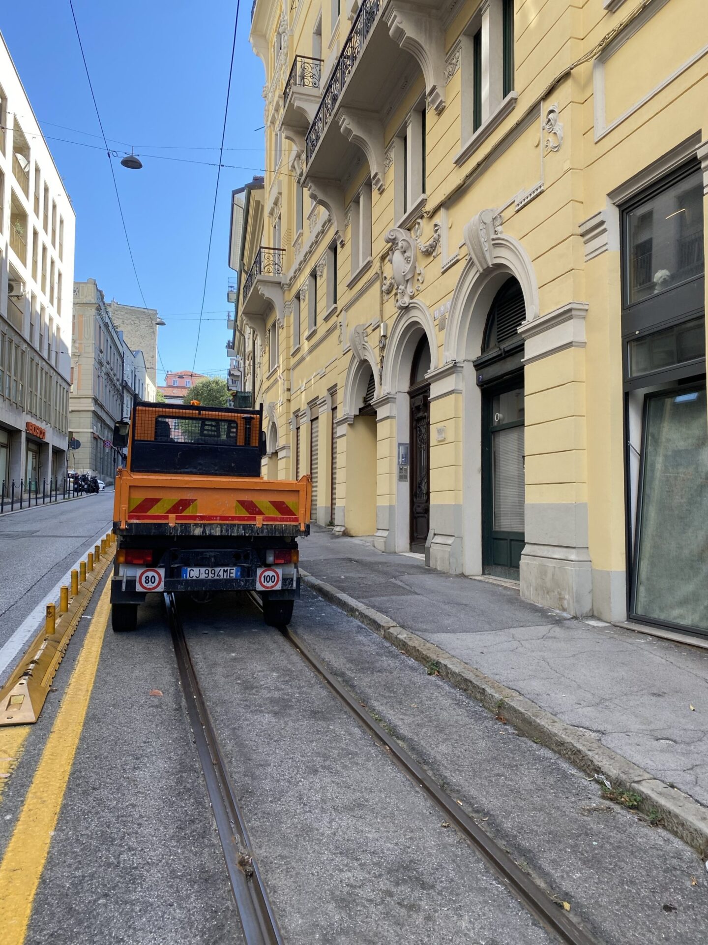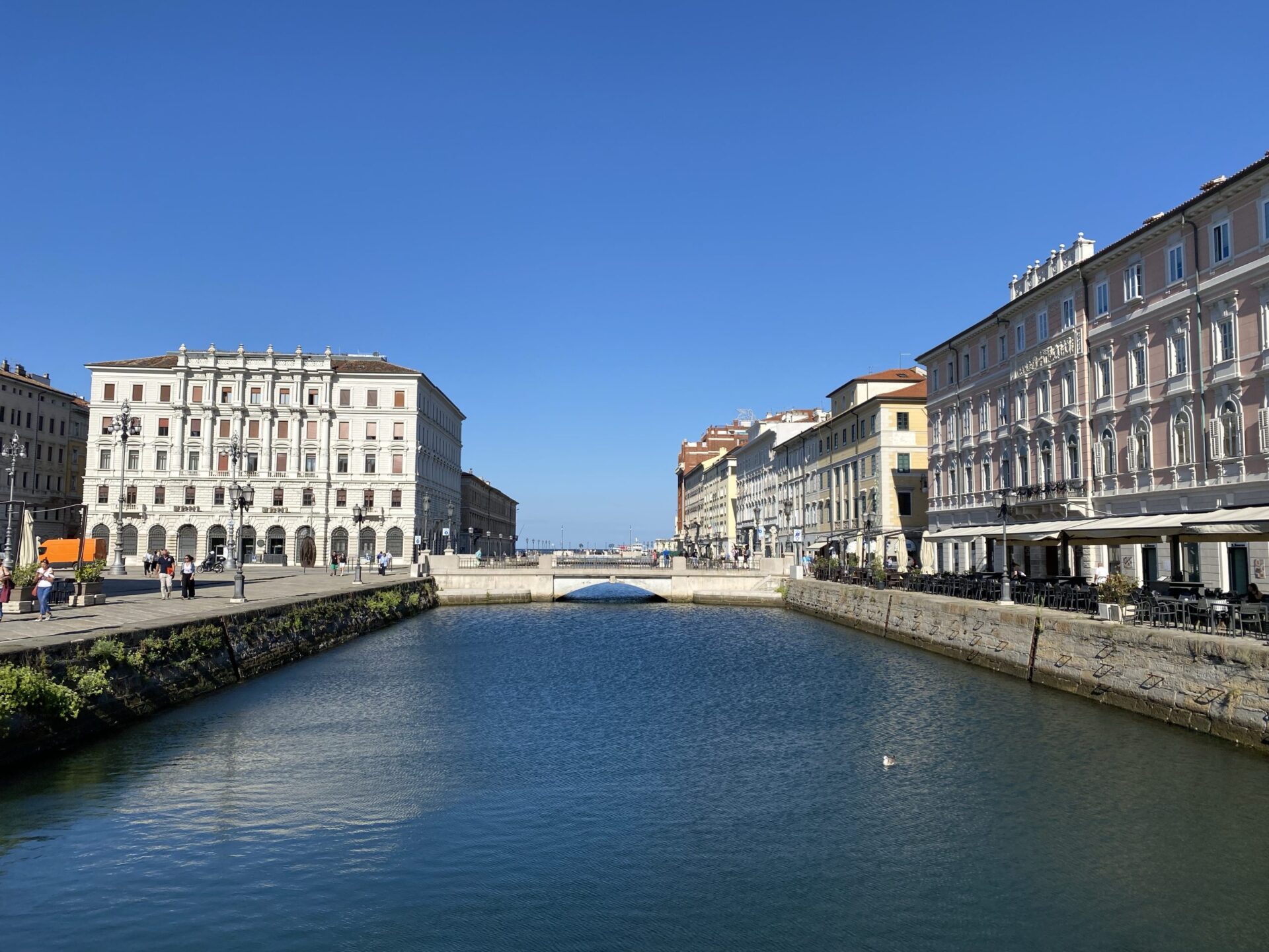 I left my bags with the hotel and headed out. Something I’d hoped to do while planning my Interrail adventures at the start of the year had been to ride the famous Trieste–Opicina tramway. I’d read rumours that it might reopen in September, but there was no evidence of this that I could see. The tracks ran directly past my hotel front door, and the terminus was just around the corner, but there were vehicles parked up the hill on the line as far as I could see. The “terminus” was just nothing more than tracks running out in the middle of the main street.
