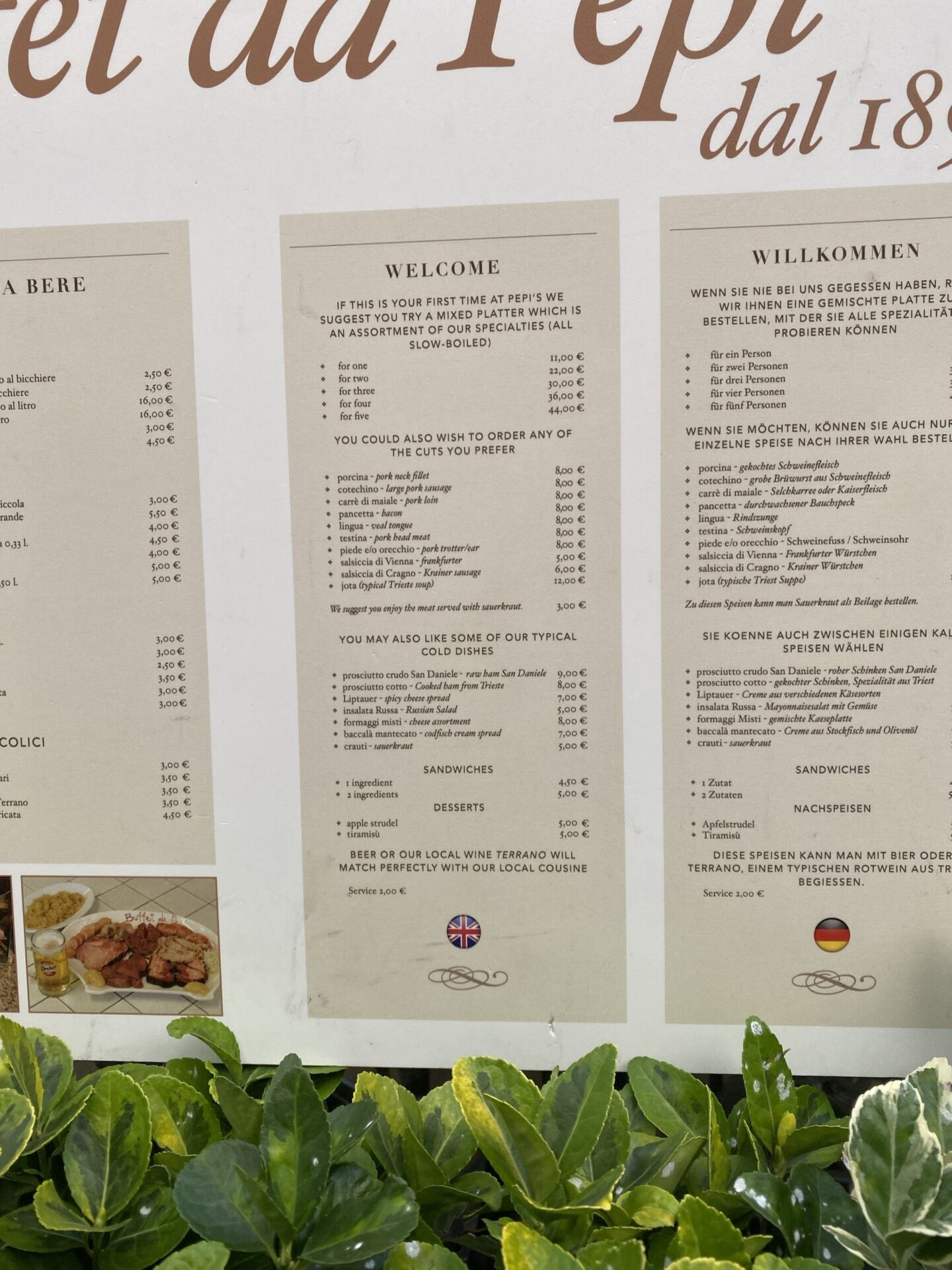 While I’ve been travelling around Italy I’ve tried to seek out local food as much as I can, but I’m not sure that the slow boiled “pork head meat” sold in Pepi’s was for me! Instead I went to a fruit stall on the market and bought a huge and delicious fruit salad, and to a deli for some bread and ham which lasted me through the day.