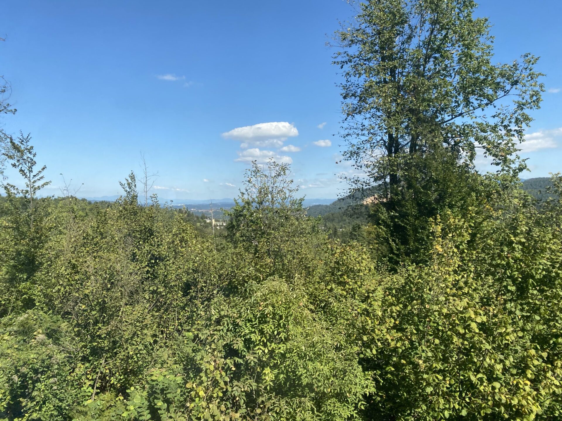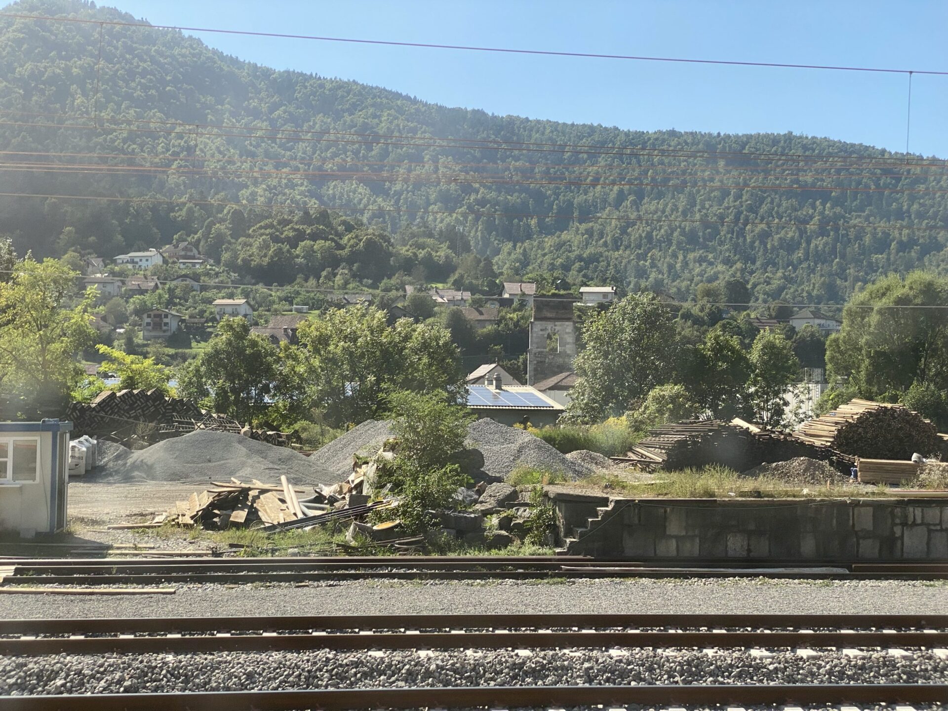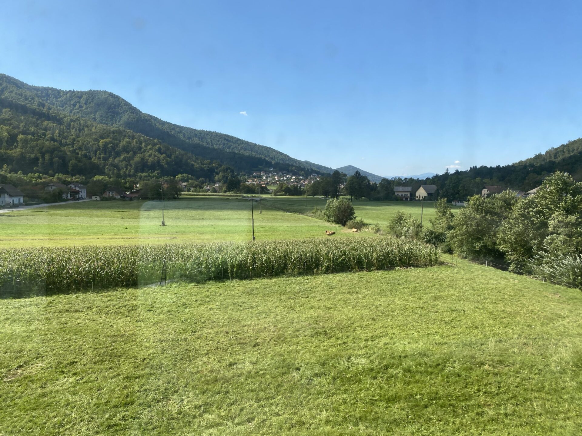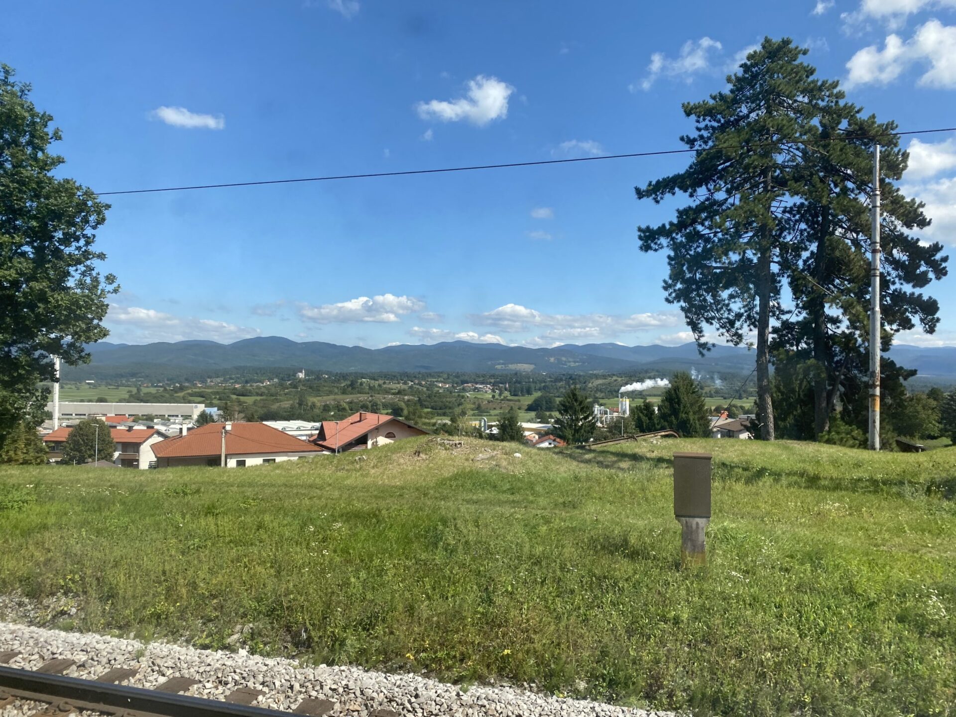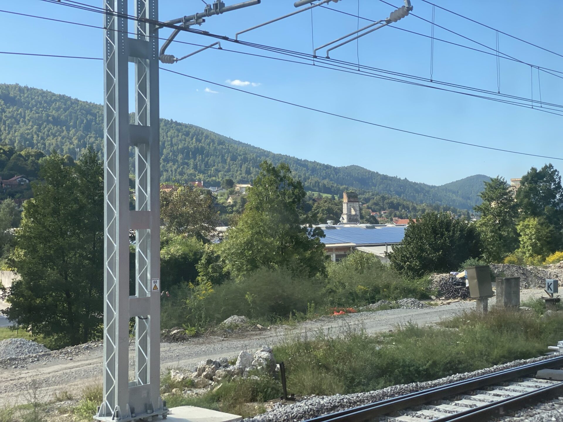 The border into Slovenia is passed almost immediately as we leave Opicina. The scenery from here is all hilly, often woodland and immediately feels different to Italy. It opens out a little and becomes a wide plain as Ljubljana is reached, with towers on various hilltops at the edges of the plain.