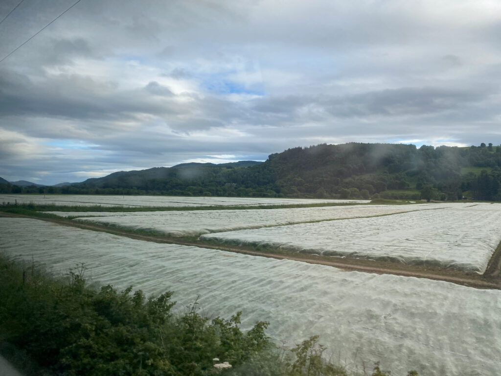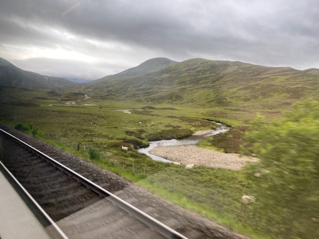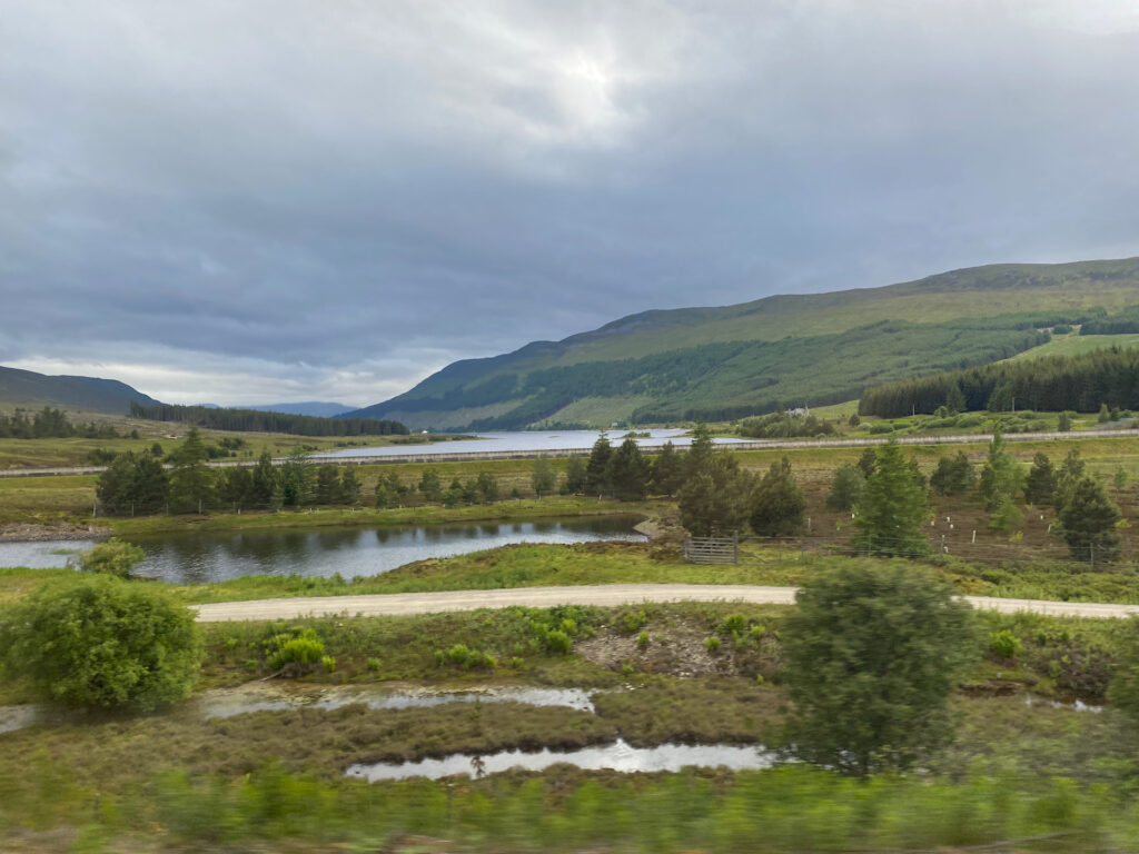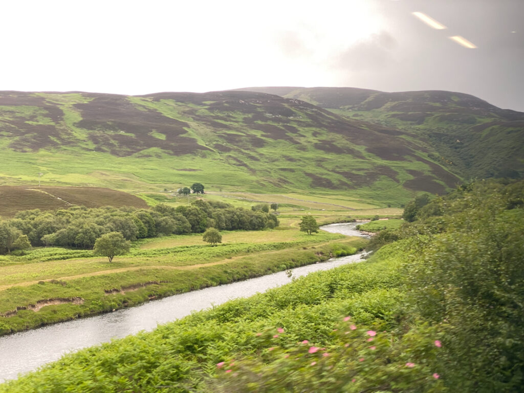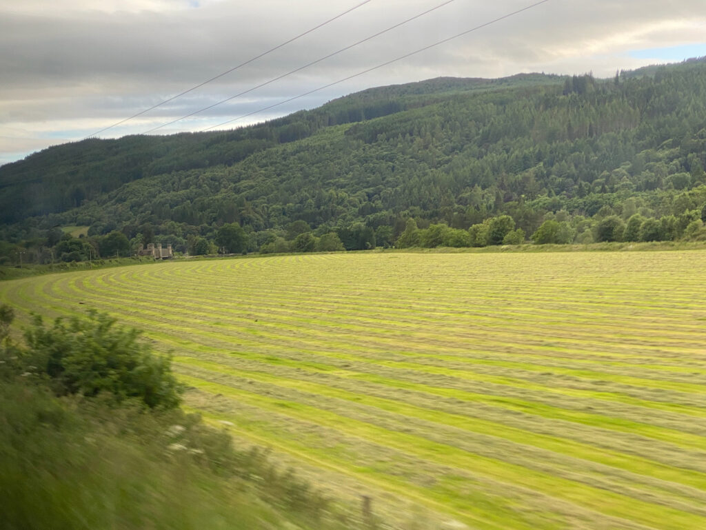 It was almost 6:15pm by the time I left for Perth. I love the scenery around Dalwhinnie and from the train you get time to look at it properly. Druimuachdar Summit, just south of there is the highest point on the main line rail network in the UK. As the line approaches Perth the fields beside the railway swap from wilderness to intensive farming.