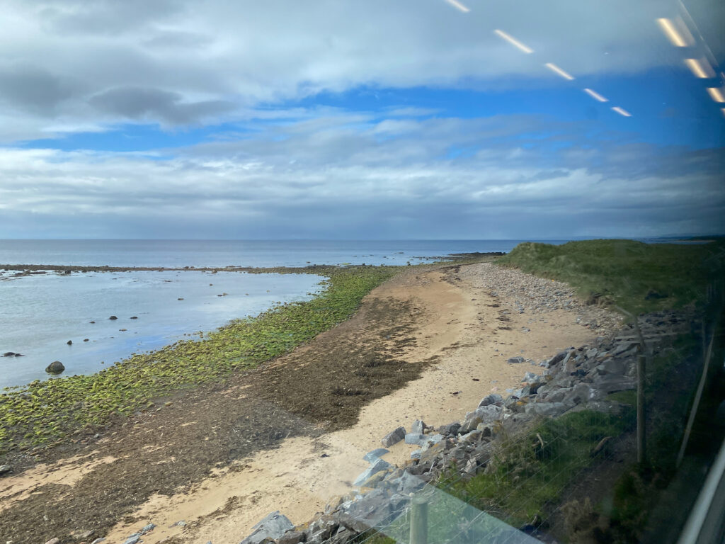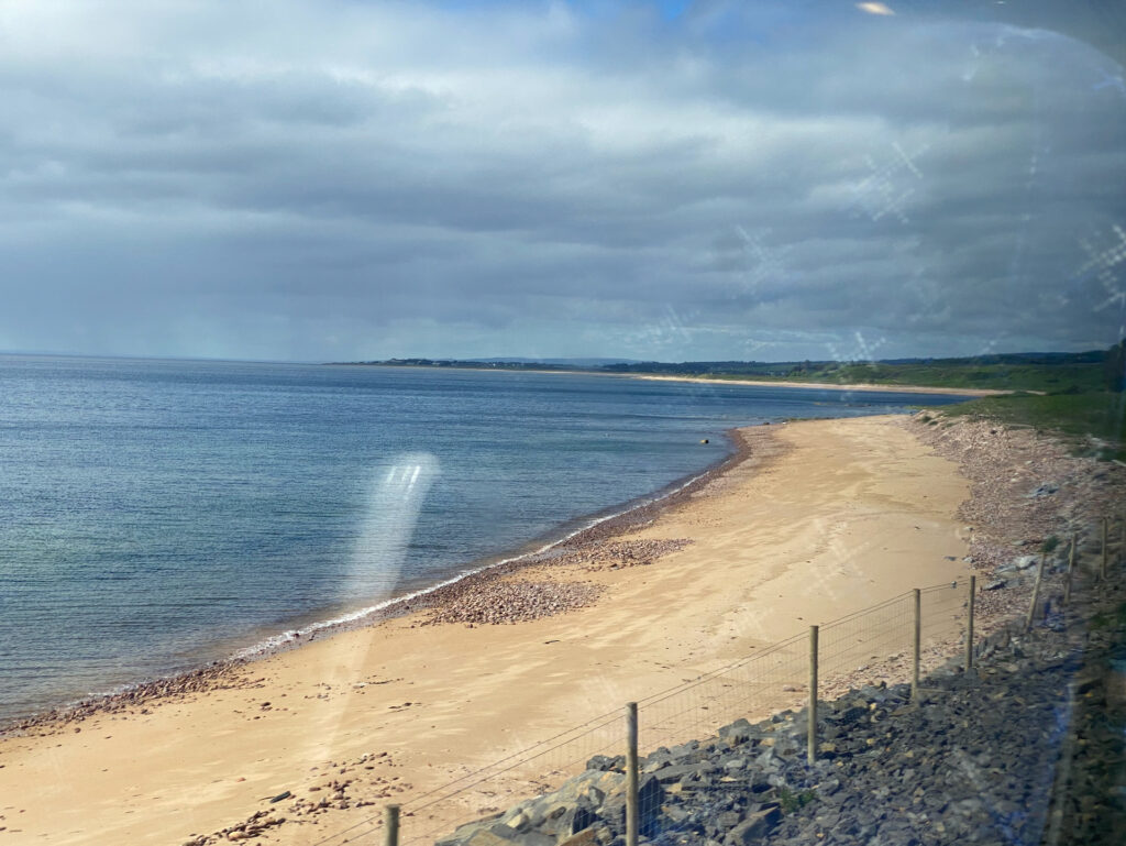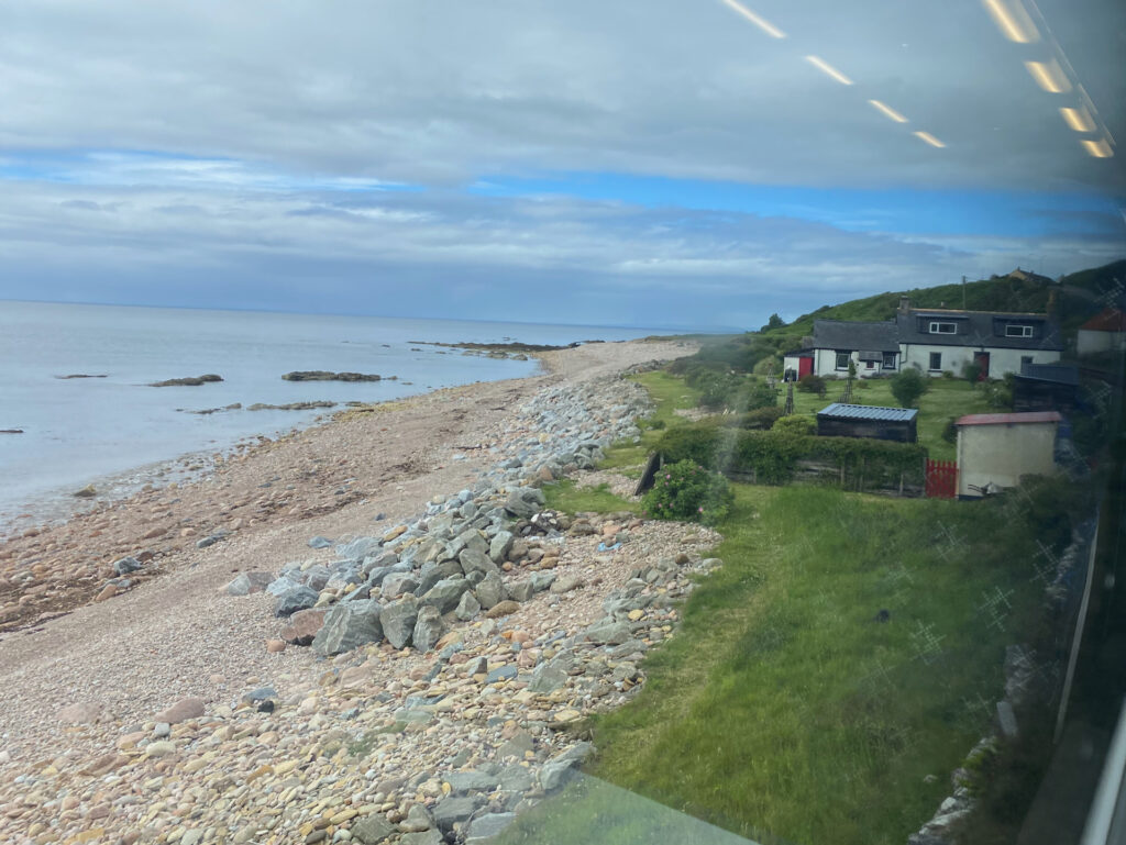 As mentioned yesterday, I know this area well and it was nice to see it without having to keep an eye on the road. The section from Helmsdale to Brora is the bit I know best of all. The railway weaves first between houses along the coastline and then past miles of beaches.