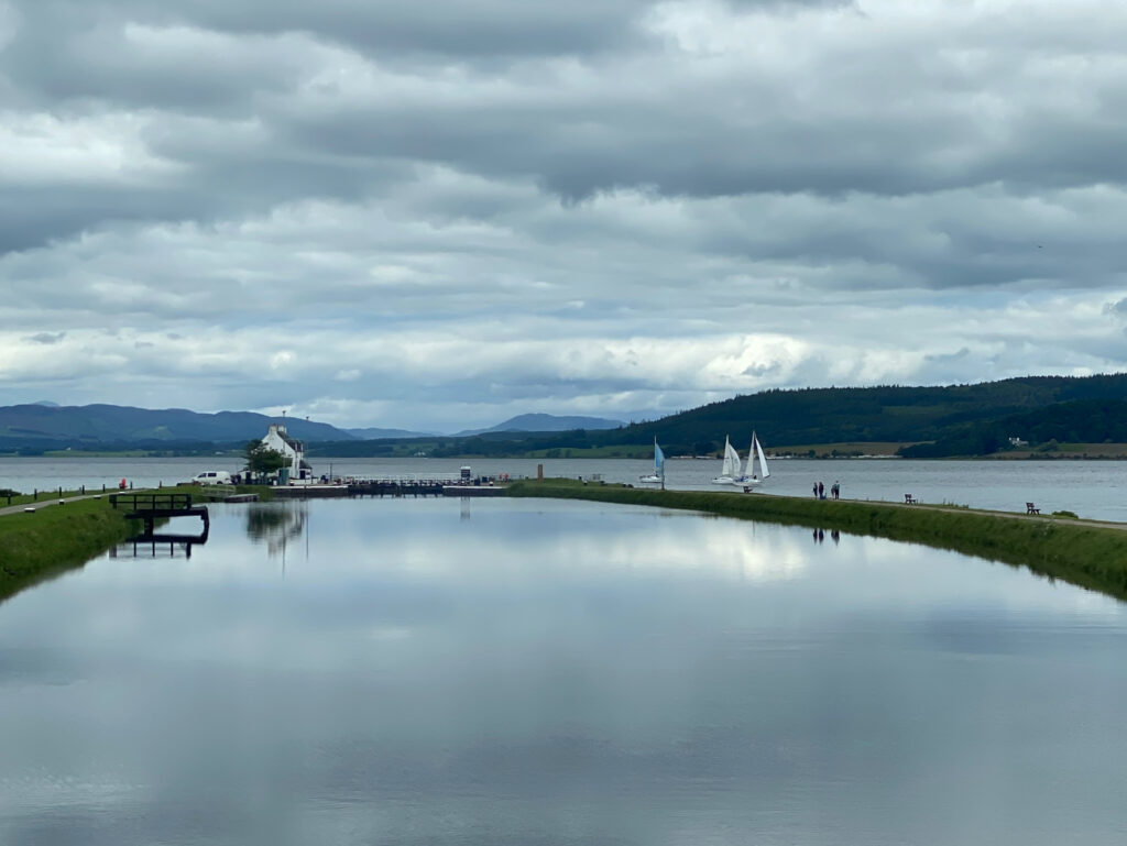 I got a really good look at the canal at Clachnaharry, as we approached Inverness. The train moved really slowly over the moveable bridge I’d visited on foot a couple of days ago.