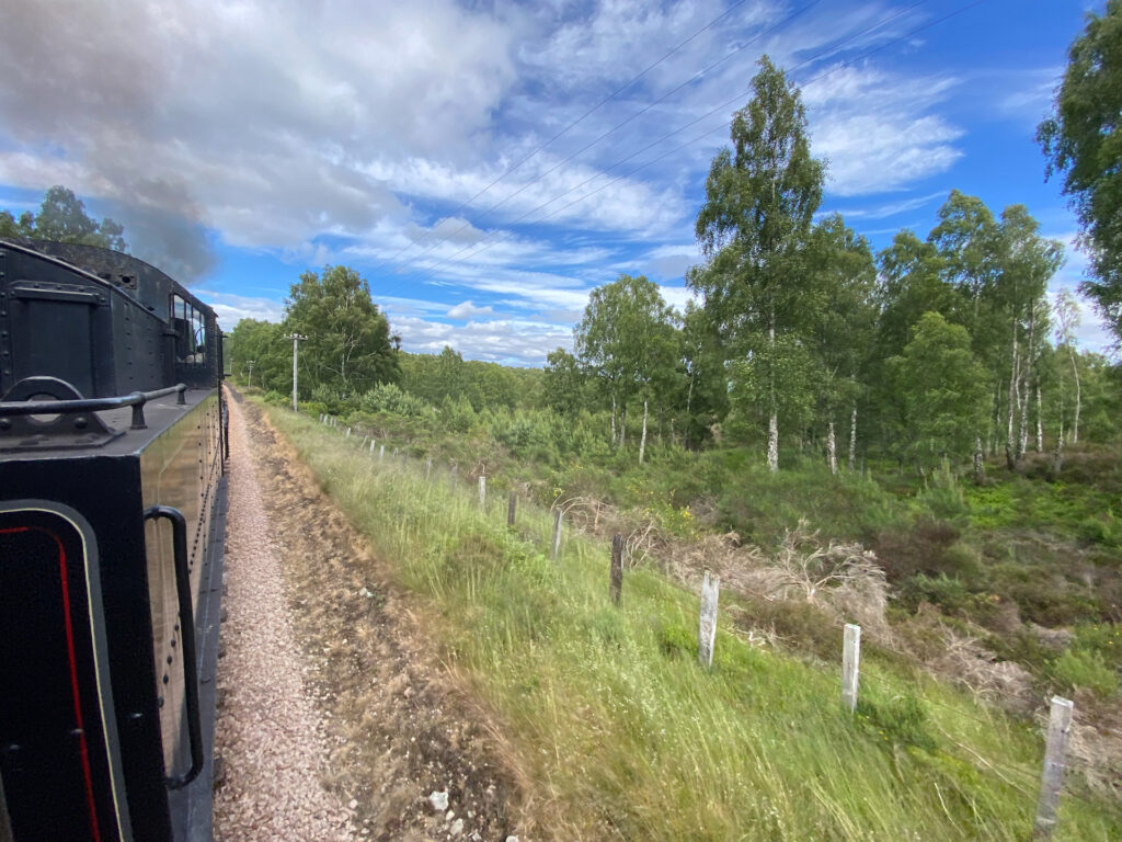 The line south from Inverness is one that I have only done a handful of times by train. It first takes a wide loop out of the city, climbing over 1300 to the summit Slochd, where it meets the A9 and the two stay within sight of each other pretty much all the way to Perth.