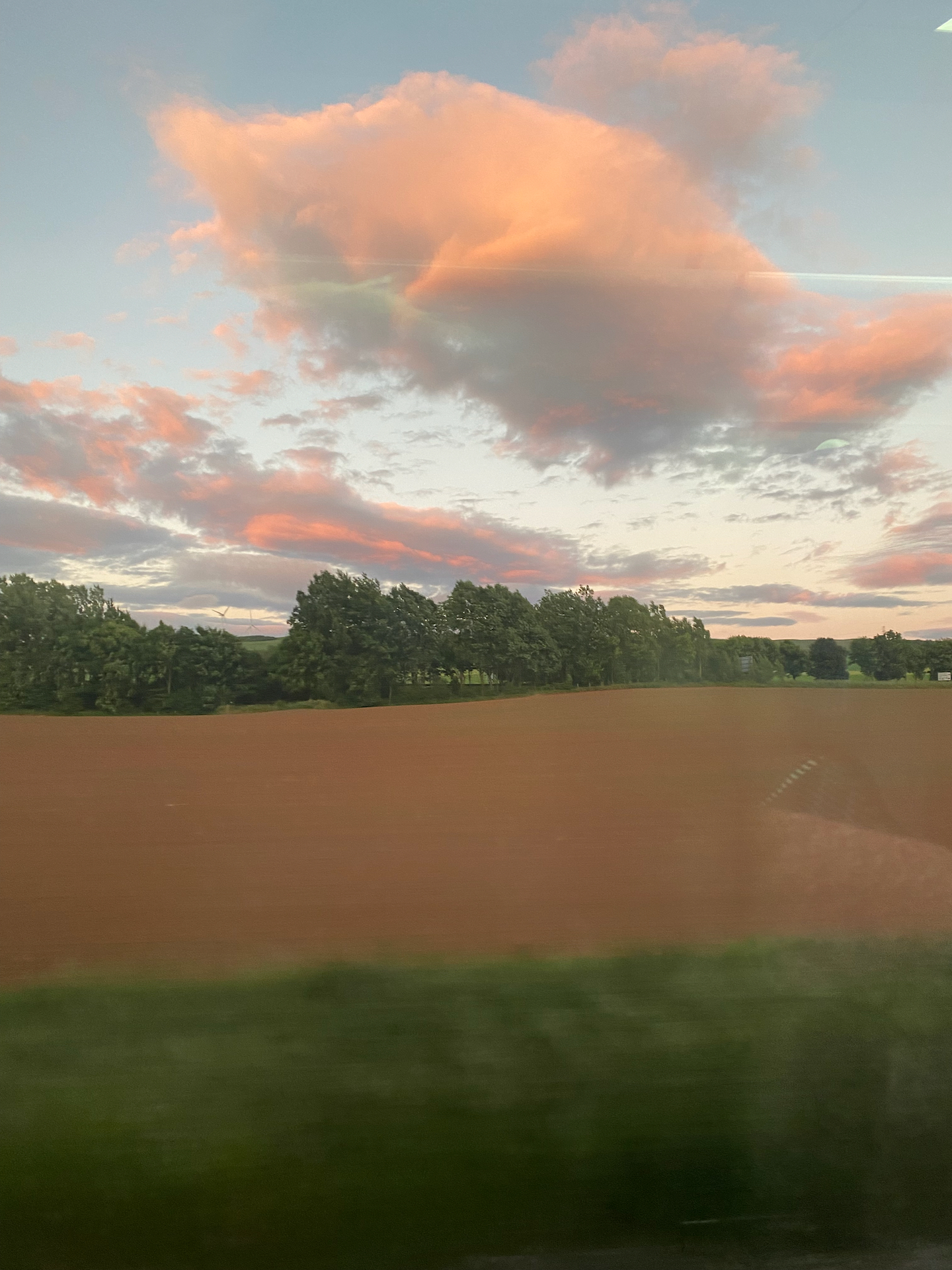I was surprised to find lots of seats in the two-carriage train had been reserved. It hadn’t even occurred to me that might be a possibility, but fortunately I’d been quick to board so managed to bag a decent forward-facing seat with a table and charging point. I ended up sharing it for most of the journey with two members of a friendly Polish group who were spread over several tables.