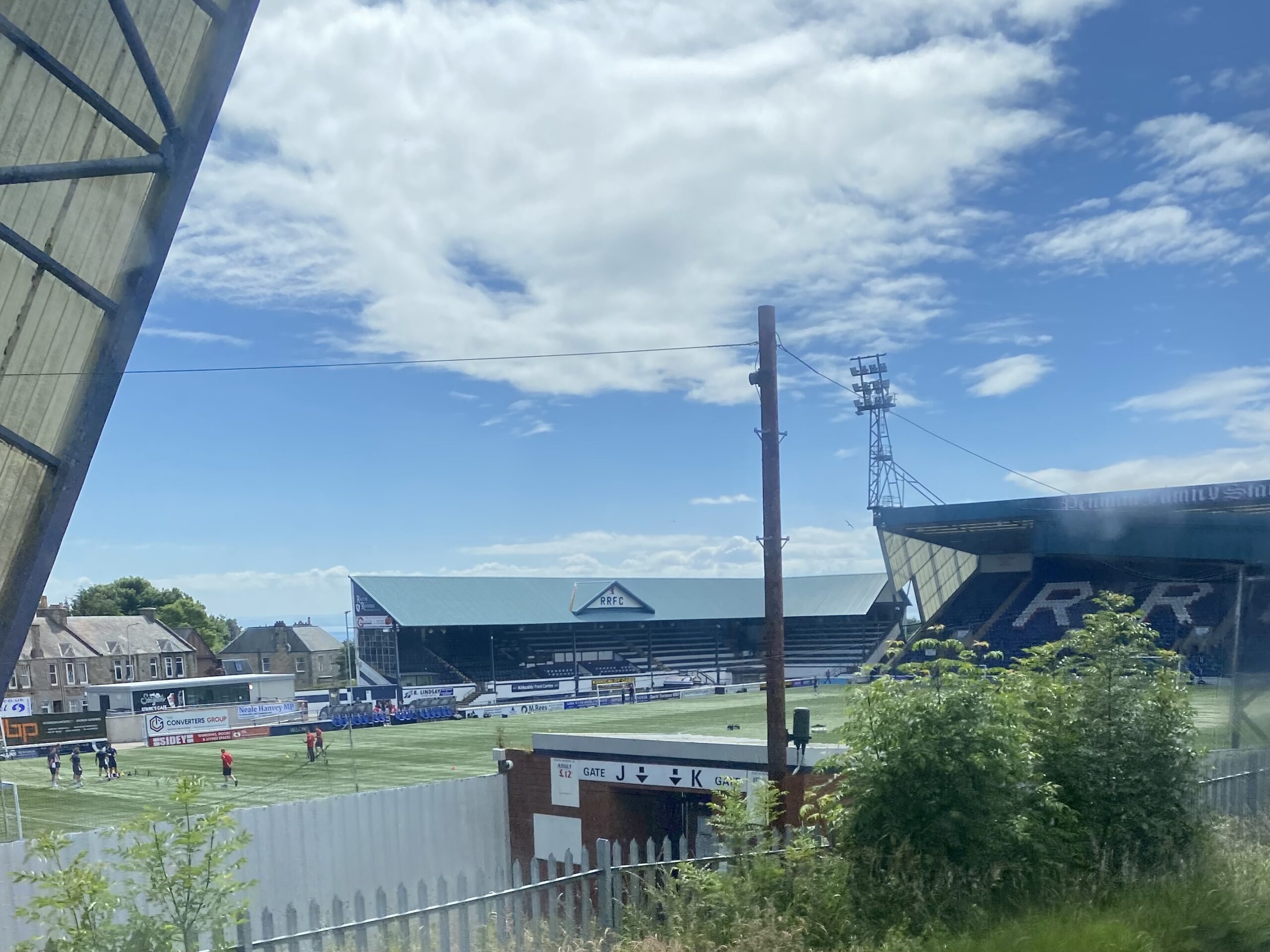 It was a glorious warm morning and the views from the bridge were spectacular. I love the coastal section here, the views over the firth of Forth are always lovely, and especially so today. In Kircaldy, we passed the home of Raith Rovers where they were clearly getting into pre-season training. I love old football grounds and Scotland has some gems. This club of course was the subject of one of the finest Colemanballs of all time, which immediately came to mind when I spotted the ground 😁
