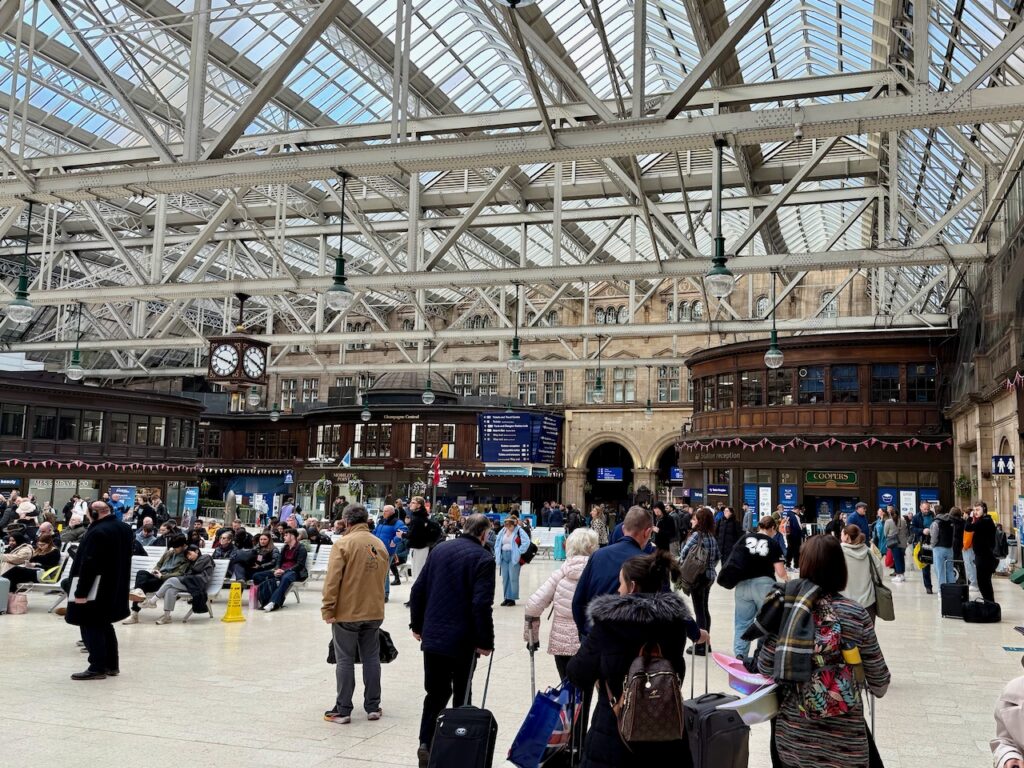 Glasgow Central is almost always busy when I pass through, but not stressful in the way that, for example, London Euston is, and I find it quite charming both inside and out.