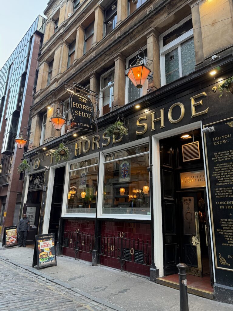A bit of a tradition when in Glasgow is to visit the Horse Shoe Bar, ideally with Tim (and occasionally others) when we’re on rail adventures, but on my own if not. Apparently it has the longest continuous bar in Europe, at 104 feet. Unlike the last time I was here they had Guinness on tap.