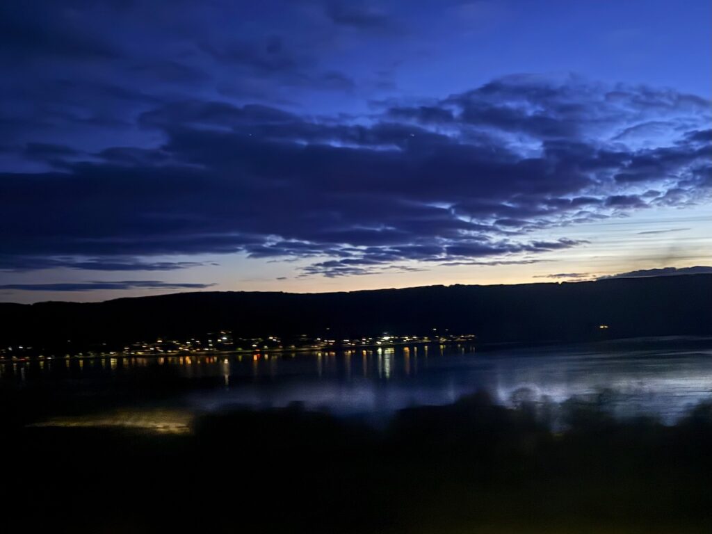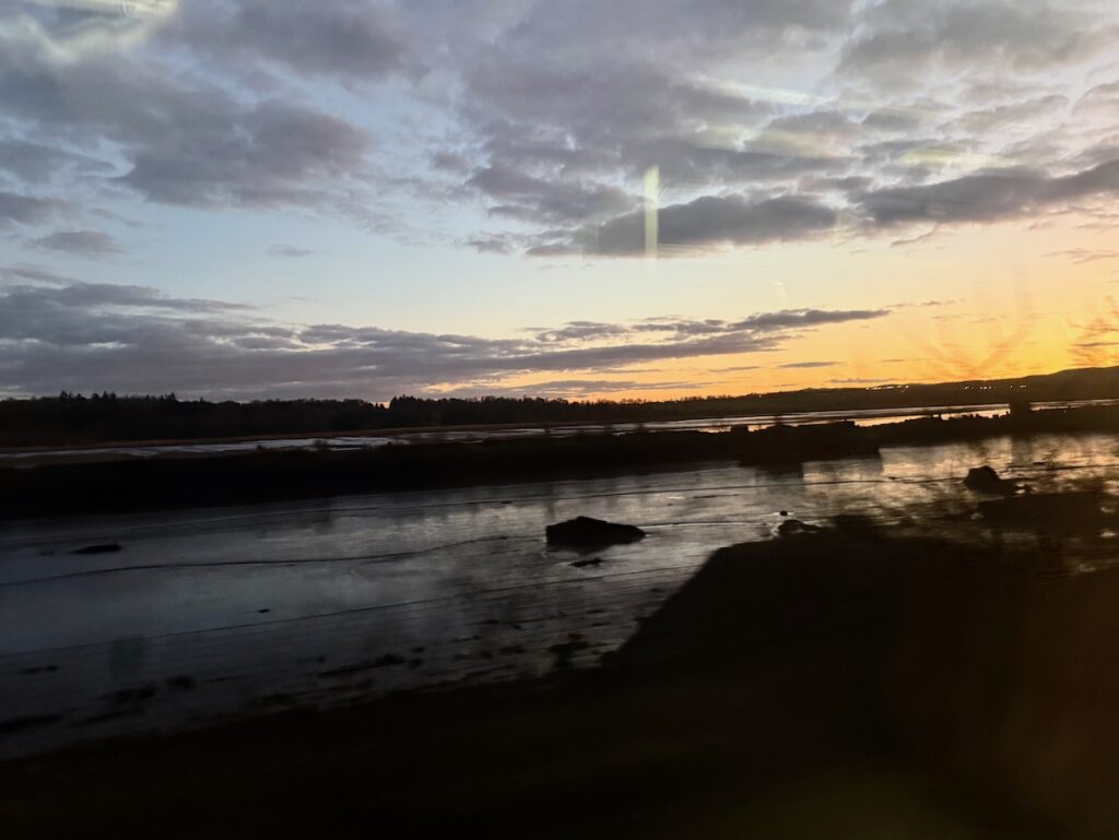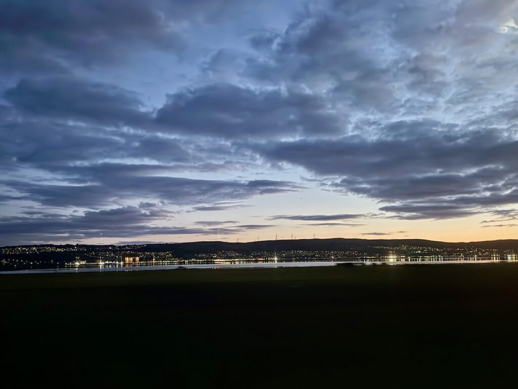 My train left in fading early evening light. By the time we were in Dumbarton it was nearly dark, but there were the most wonderful views across the Clyde, which continued until we turned away to the north.