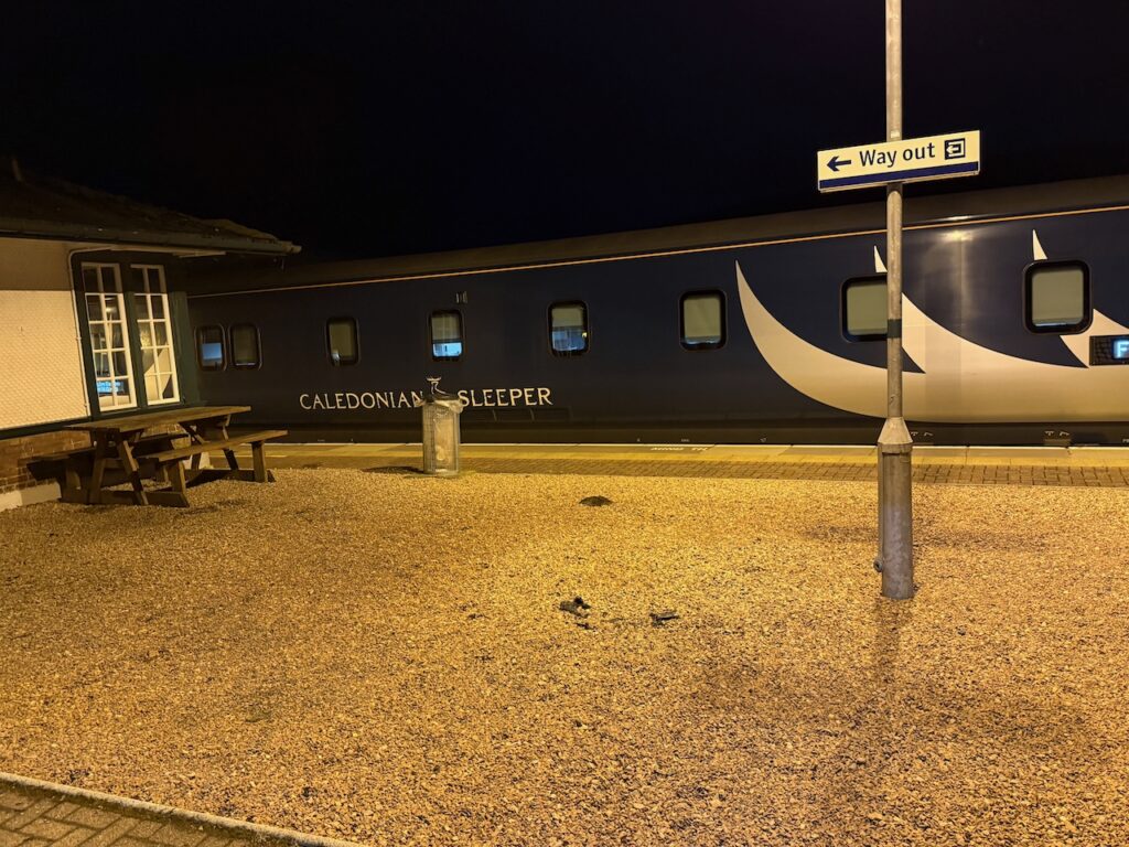 At Rannoch our train crossed with the Caledonian Sleeper, an hour out of Fort William, on it’s way to Euston by breakfast time.