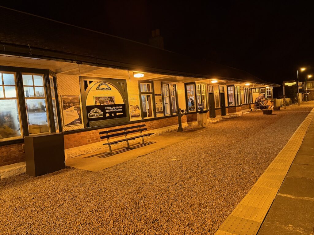 Shortly before Fort William we stopped at Spean Bridge, where the station building is now a bar and restaurant. Plenty of people were enjoying themselves in there, and it looked very pleasant.
