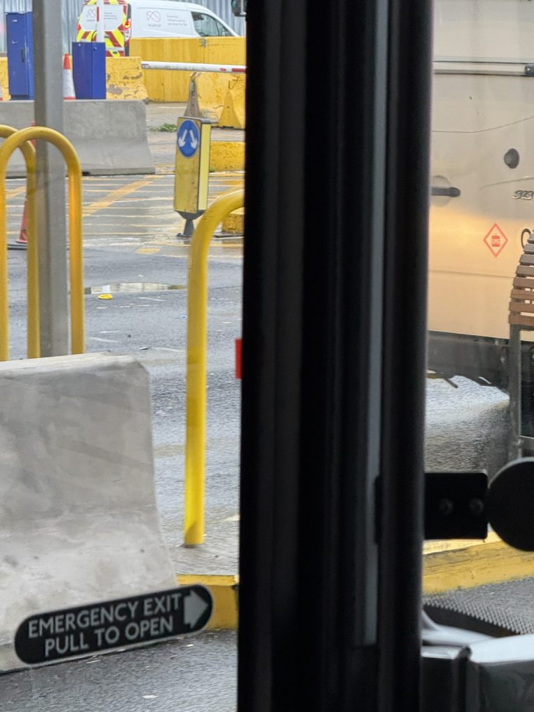 I felt sorry for one of the passengers who was in a mobility scooter that was only just able to manoeuvre on and off the coach, with multiple reversing movements. Once we were all back on board, a couple of the security officers put paper security seals over the doors, including the driver’s door, so that no-one could get in or out unnoticed as we drove back to the eastern docks. The idea of border security being dependent on a piece of sticky paper felt rather surreal!
