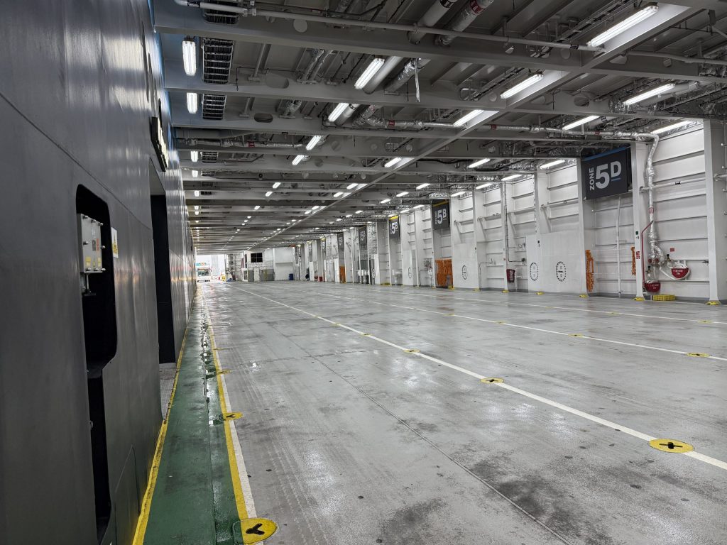 This rather odd process only happens with coaches, apparently, and is really new. Our coach driver had never done it before. Back across town, we went through port security. Once the paper seals had been checked and removed, we all had to get off again, this time with our luggage to go through the security scanners. We then got back on board a second time and finally loaded onto the ship.