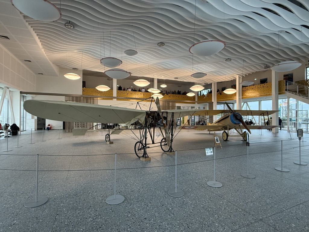 Despite a wet morning the crossing was very calm. Unfortunately at the French end foot passengers were last to be unloaded, indeed they were already loading cars by the time our coach turned up. It was a short drive to the terminal, with no further security process. There was a rather nice display about Louis Blériot in the terminal building, with one of the type of plane in which he famously crossed the channel.