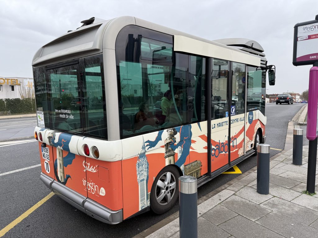 There is a free bus that runs between Calais and the port every 11 minutes. The first one to arrive was tiny and our fellow passenger who was in the mobility scooter was denied entry, which seemed very unfair, but it was physically impossible for him to drive onto it as the floor was at the wrong level and there was no ramp.