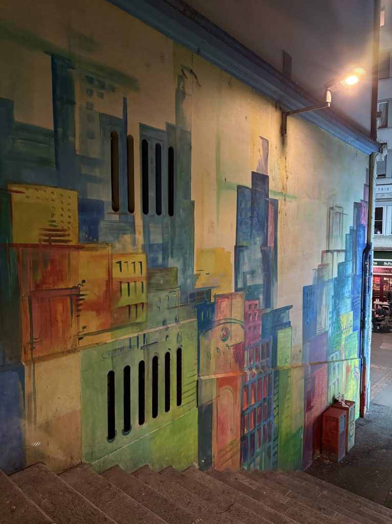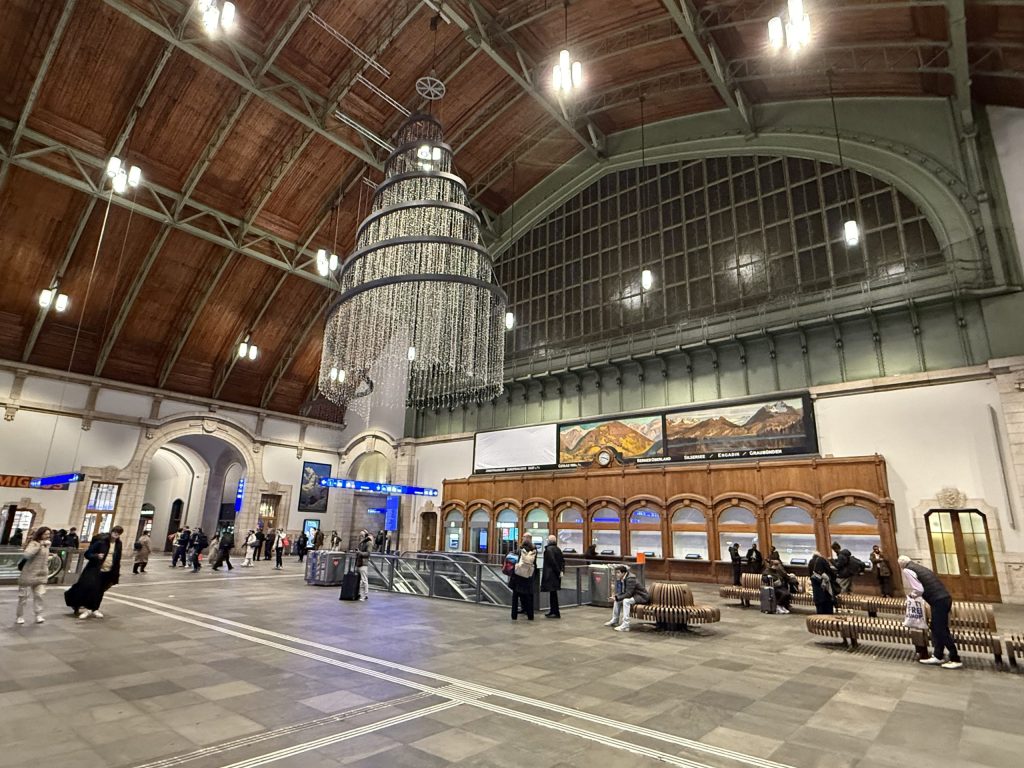 It was dark by the time we left Est, so I saw nothing of the journey to Strasbourg or onward to Basel, but I’ve done it before. I do like Basel station, like many of the large Swiss stations it has wonderful murals on the walls, though it looks like one of them is being restored, or at least protected, at the moment.