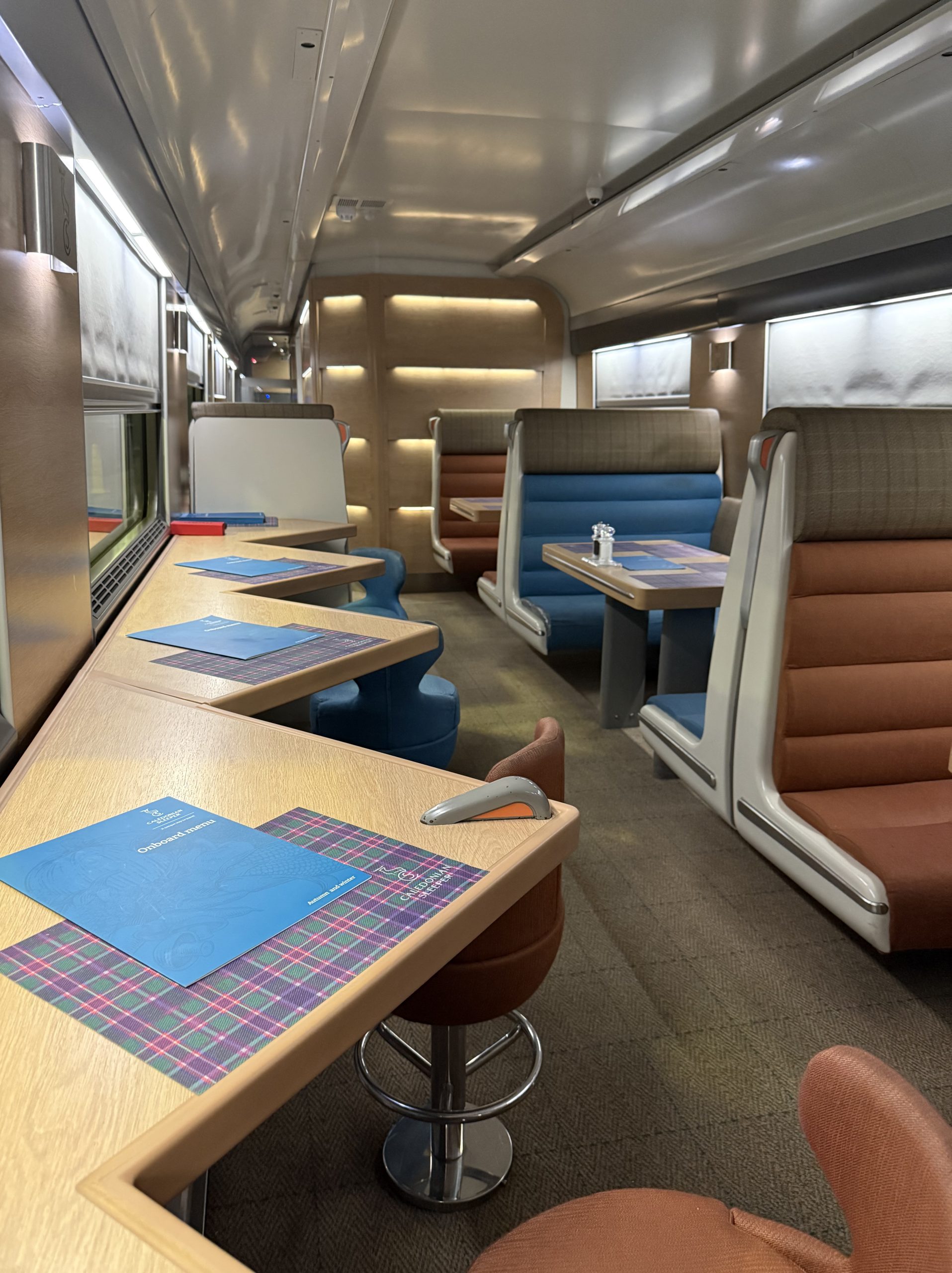 I was first into the dining car and was asked to sit on one of the single seats that run down one side. I didn’t find it terribly comfortable, they’re a bit small, I thought. By the time we left Euston, 6 more people had arrived. Two couples and two solo travellers.