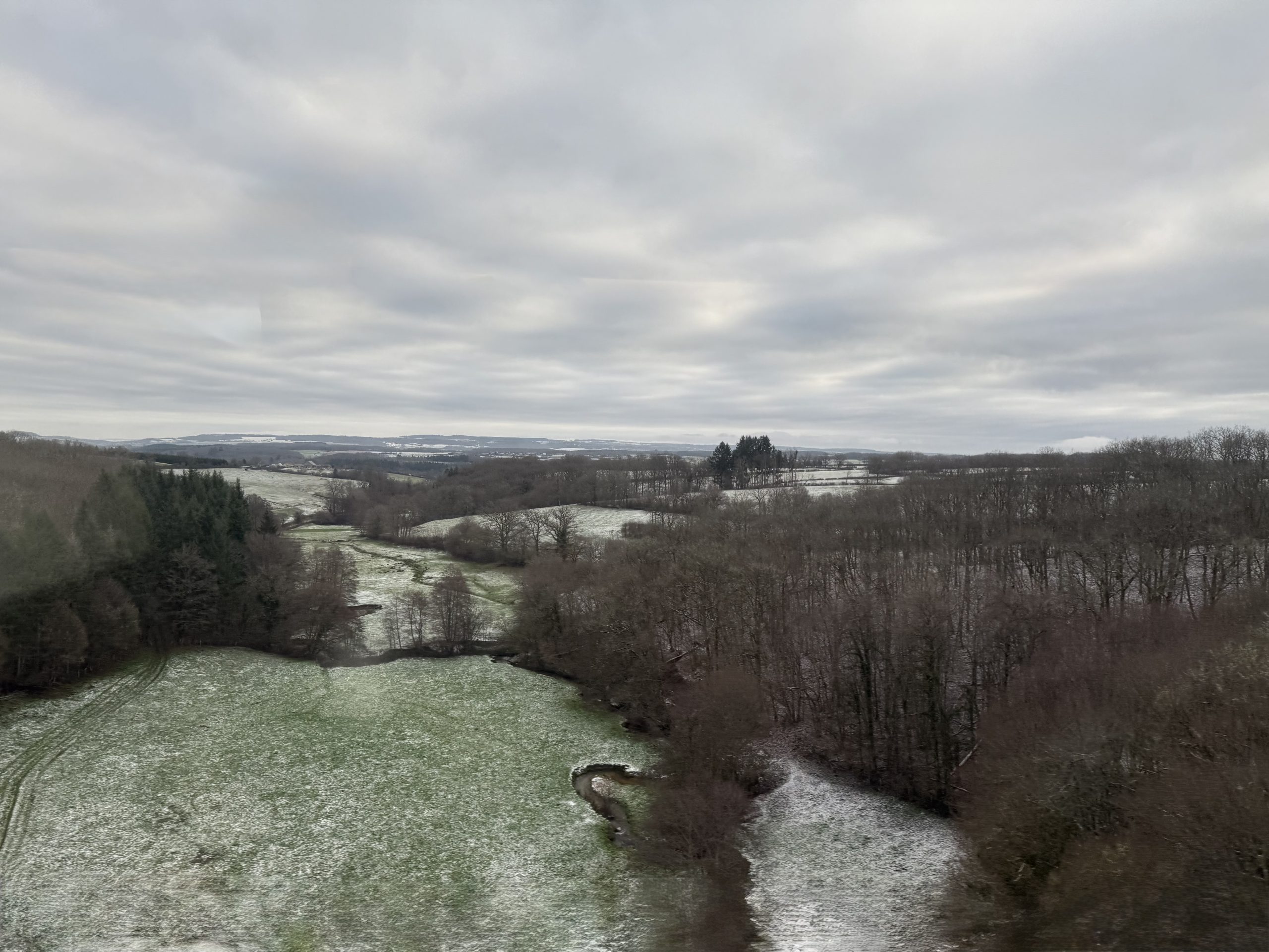 Having exited Lille though a tunnel we emerged into suburbs where not a lot was happening on a Sunday morning, or at least not a lot that I could see as it was still dark. Additionally I was in a middle seat. As in the UK, First Class is a 2+1 arrangement but as a last minute booking I didn’t have a window. The first bits of sunlight I saw came as we approached Charles de Gaulle airport.
