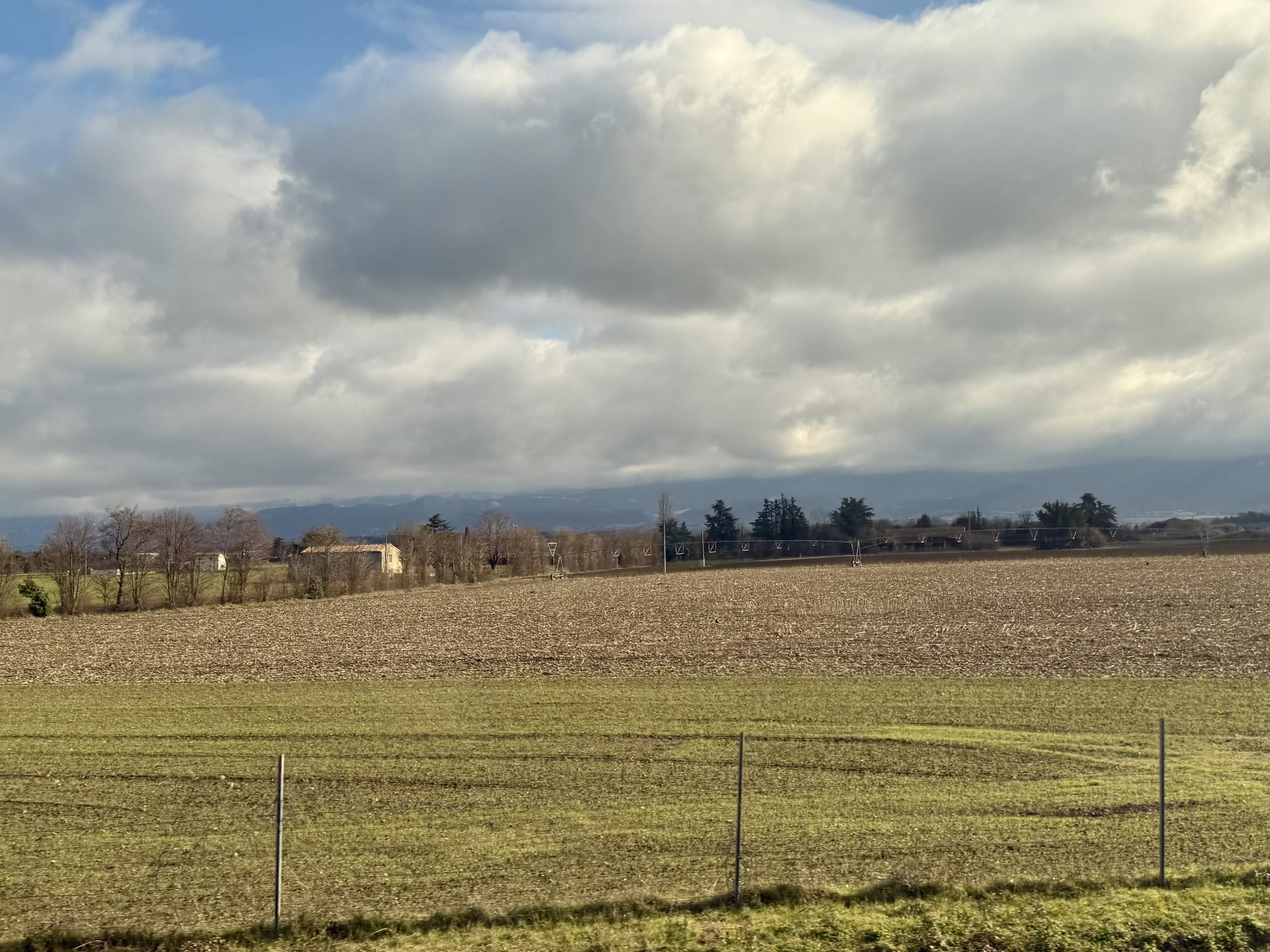 The journey progressed very quickly (at 300km/h for long stretches) but with not a lot to see. The scenery was unremarkable but as we got further south there was less evidence of frost and more of Provence scenery, and an improving climate.