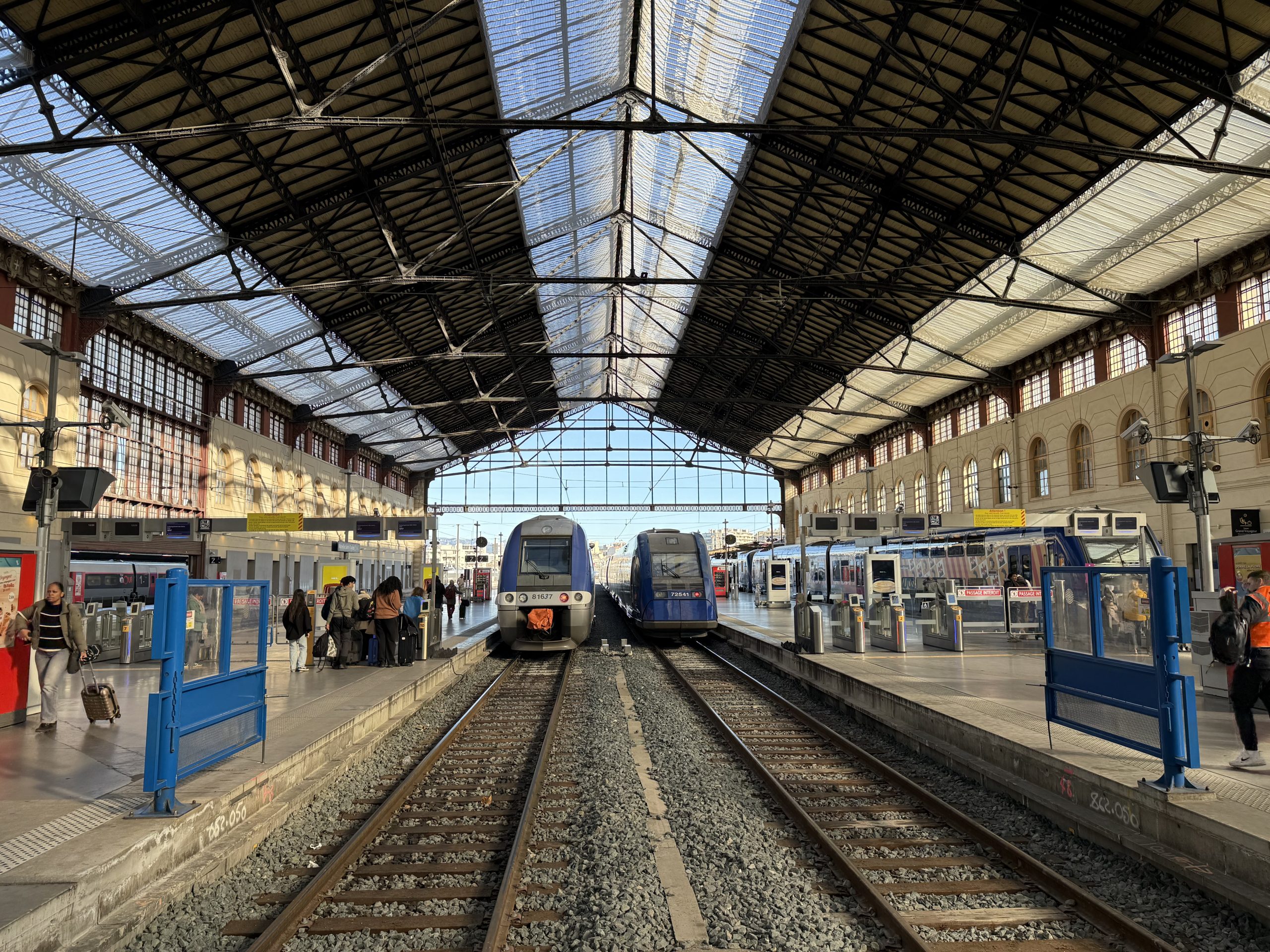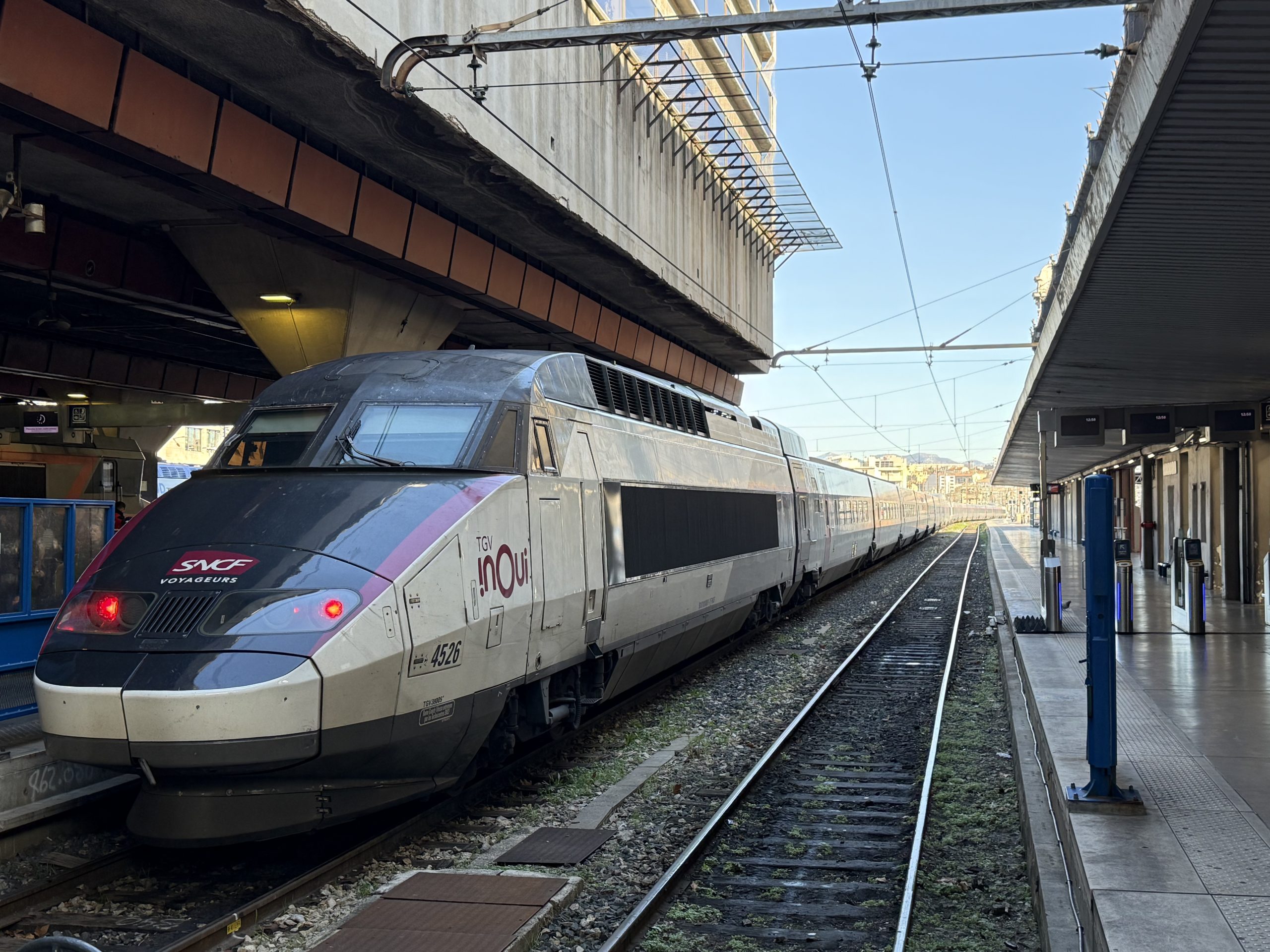 We arrived into Marseille around 20 minutes late. Not for any noticeable reason but we started losing time at Lyon and never made it up. As we got off I had a first daylight view of my train, with two TGV sets combined it really is huge, indeed I couldn’t even see the far end.