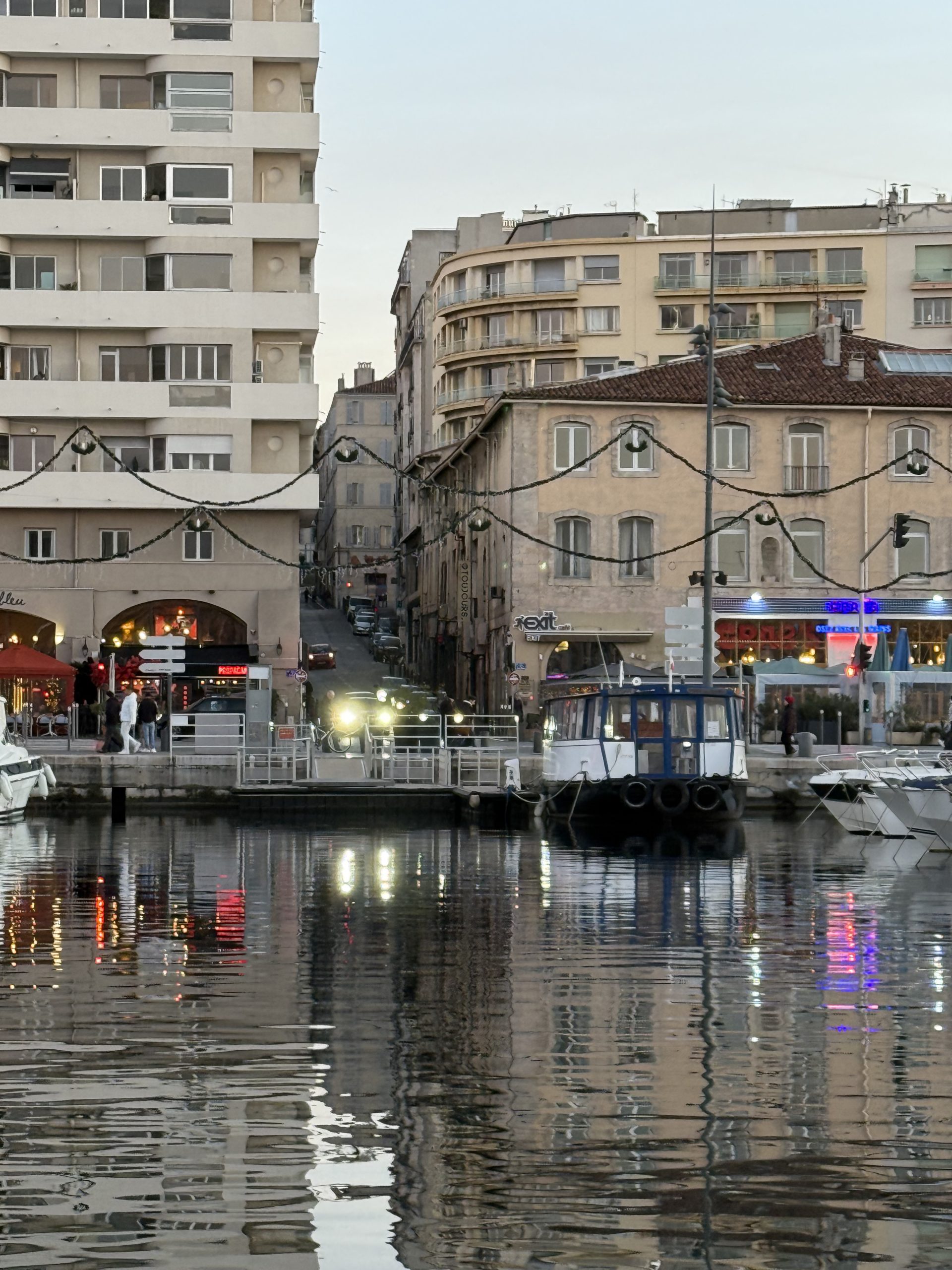 A bit of fun in the harbour is the ferry that crosses it about half way down, to save you walking all the way around. It only costs 50c so I had to give it a go. It was getting darker by now so the photos through the side windows weren’t great.
