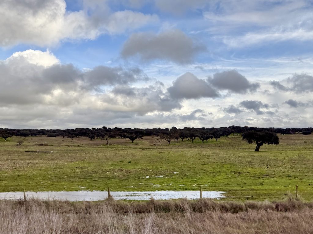 In no time at all we were in Portugal. If there was a sign, I missed it, but it very quickly became clear that the border coincided with a change of scenery. Everywhere was suddenly very green. A lot of the scenery looked to me like it could be the Peak District of the UK. Only the buildings marked it our as being a different country. Having been less than enthusiastic about inland Spain, this all felt very much nicer, yes it did feel somewhat familiar but it was also charming in the way it was different. At one point we passed a few fields of buttercups. Spring is well on the way, in mid-January!