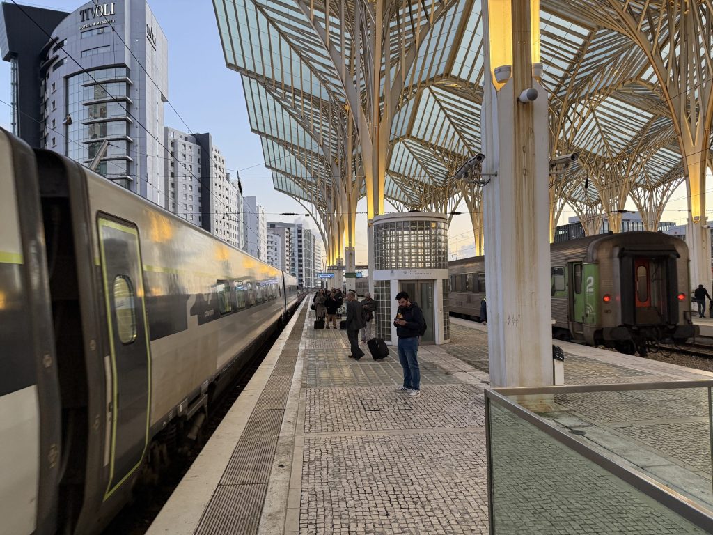 The train pulled into the very impressive Oriente station and I got out. I waved goodbye to my Finnish friend, who was going on one more stop into the centre of Lisbon and as that train pulled off, the Faro train pulled in on the adjacent platform. They were literally side by side for a few seconds. I won’t get a tighter connection that that, however long I try!