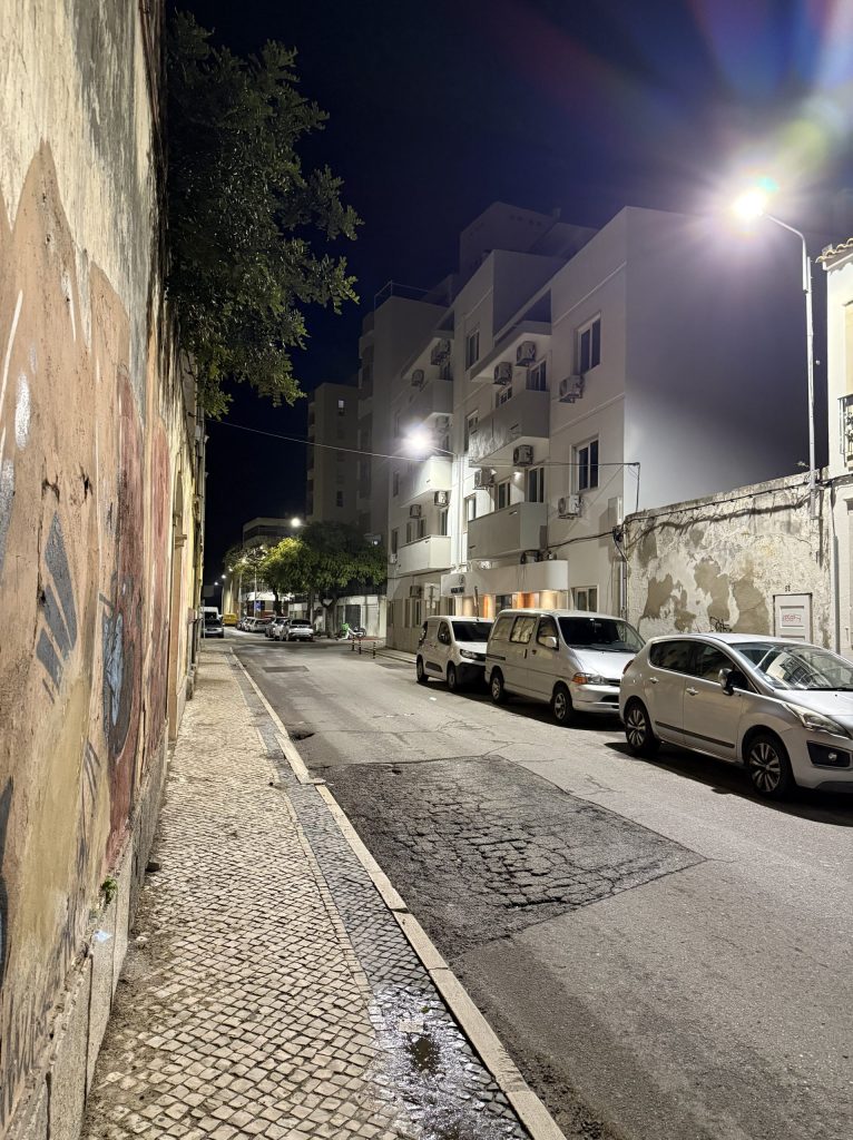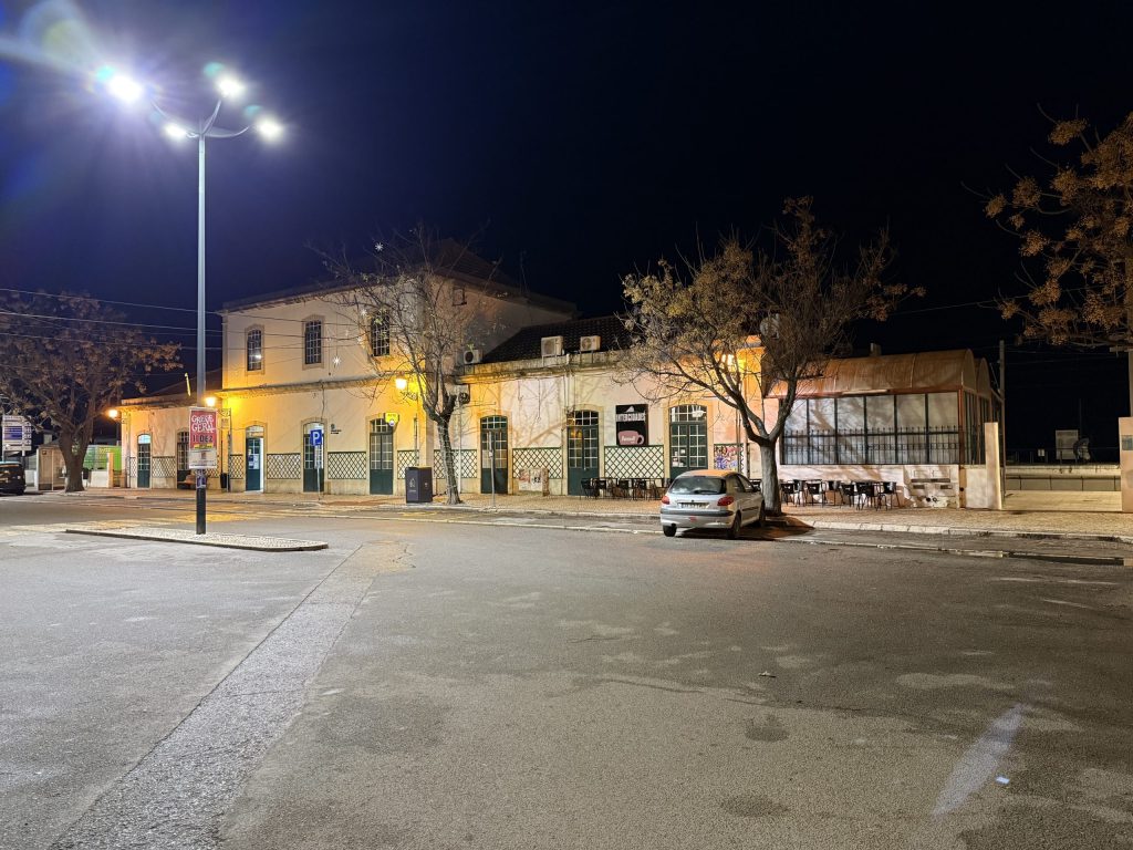 It turned dark very quickly. I was now able to book a hotel, as up to this point had been was no certainty that I would even get to Faro tonight. The selection of highly rated hotels was really good and they were improbably cheap. I guess it is a place that doesn’t get a lot of visitors out of season, so there is lots of unused hotel capacity. I chose a place a few minutes walk from the station.