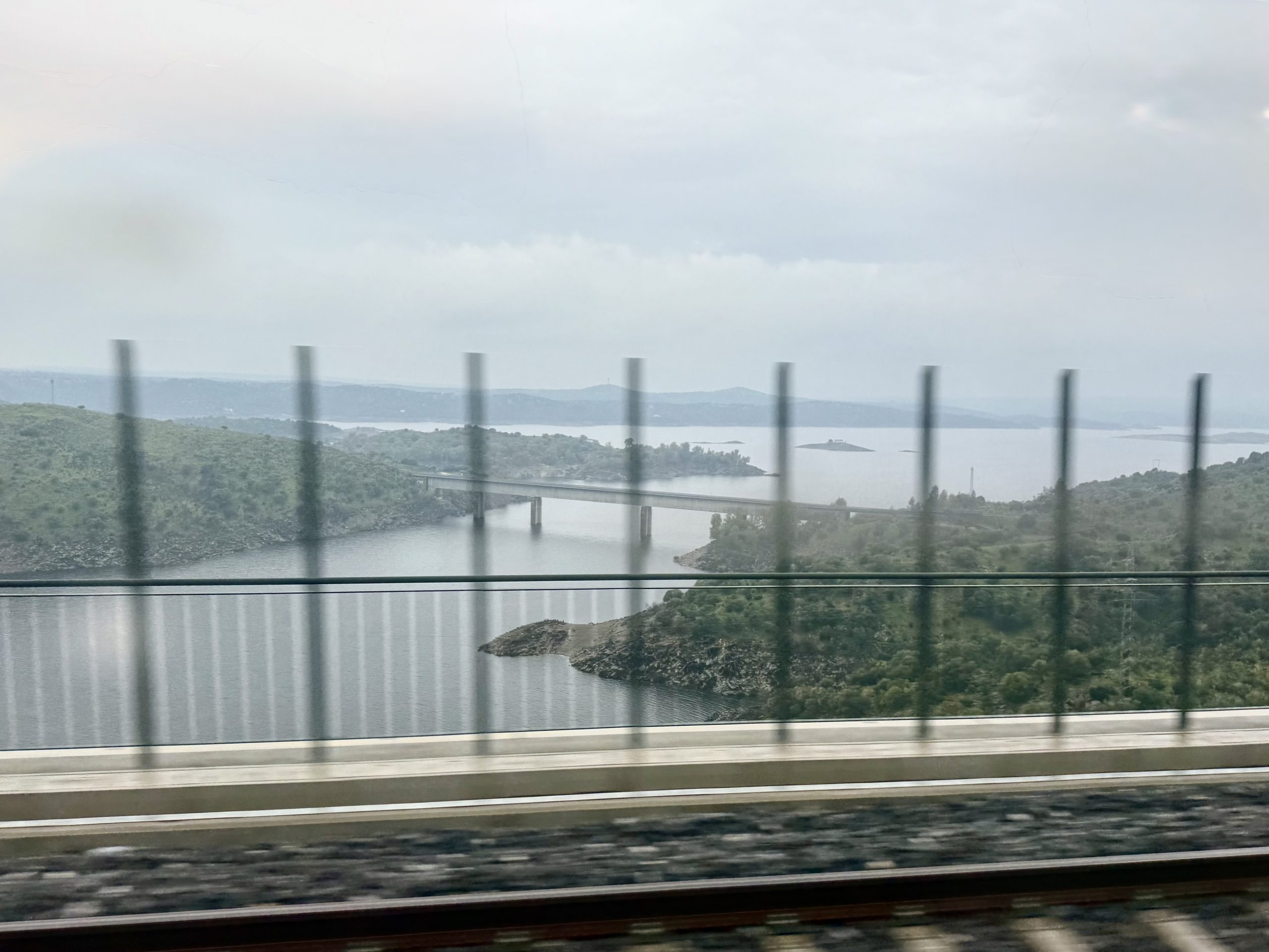 We left the city on a viaduct over the estuary of the Rio Tejo (Tagus River.) I look forward to seeing it from below at some point, but from up high with the sun setting it was certainly a great view, even with the bridge struts in the way.