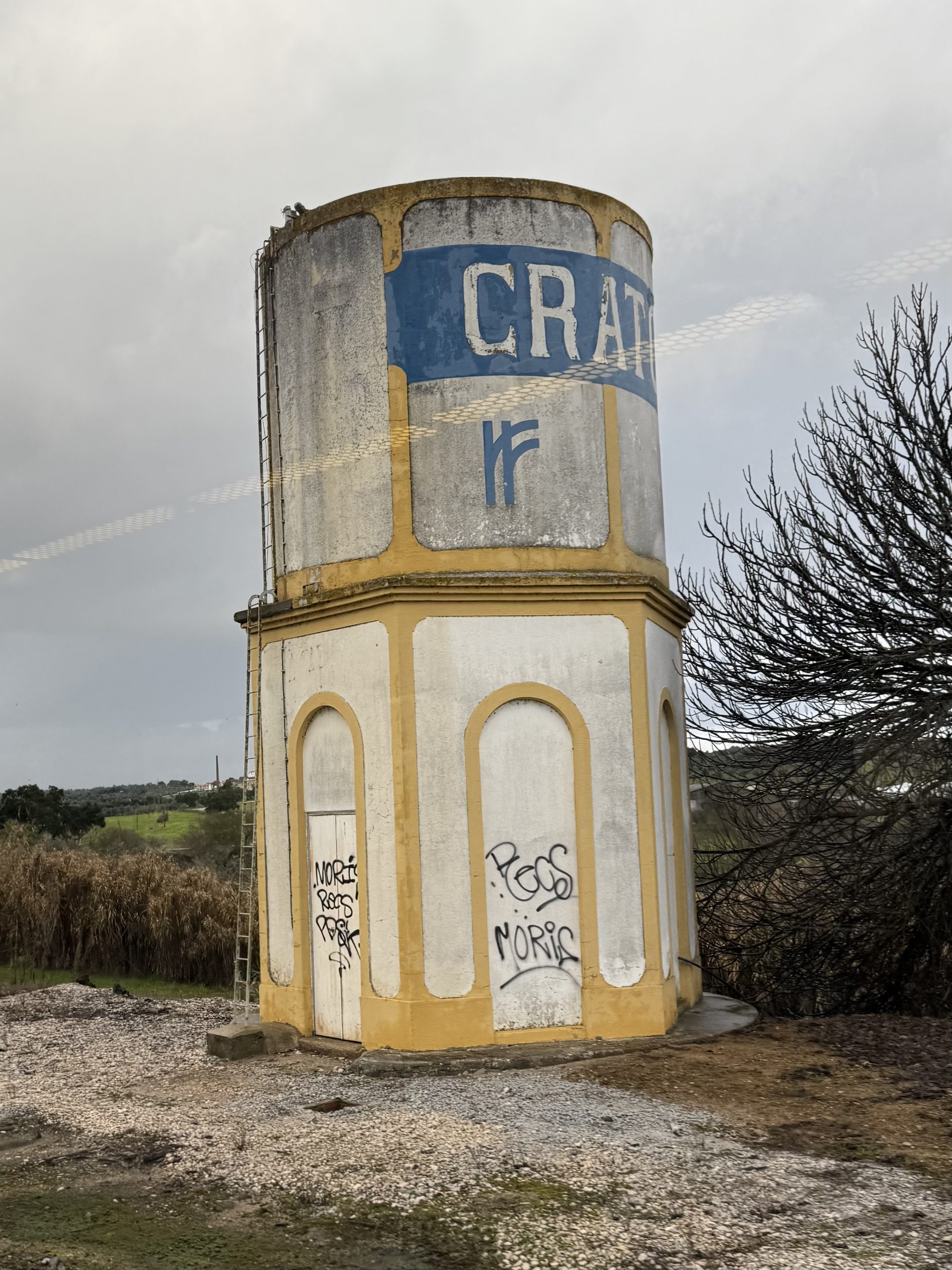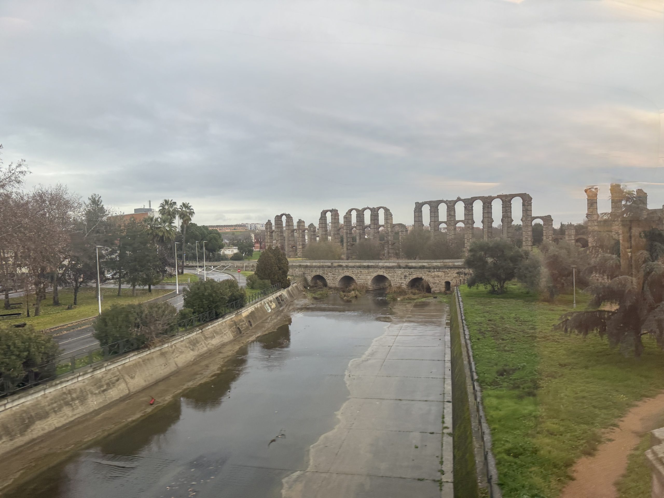 Something that I clearly remembered from the previous trip was the Roman Acueducto de los Milagros, or Aqueduct of the Miracles in Mérida. Oddly you pass it twice, as the train changes direction at the station there, reversing past before continuing in a different direction. While we were paused in the station I spotted a rather odd structure just beyond the station limits and couldn’t decide whether it was functional (though I’m not sure what it might be) or whether it was a stylised modern take on its antique neighbour.