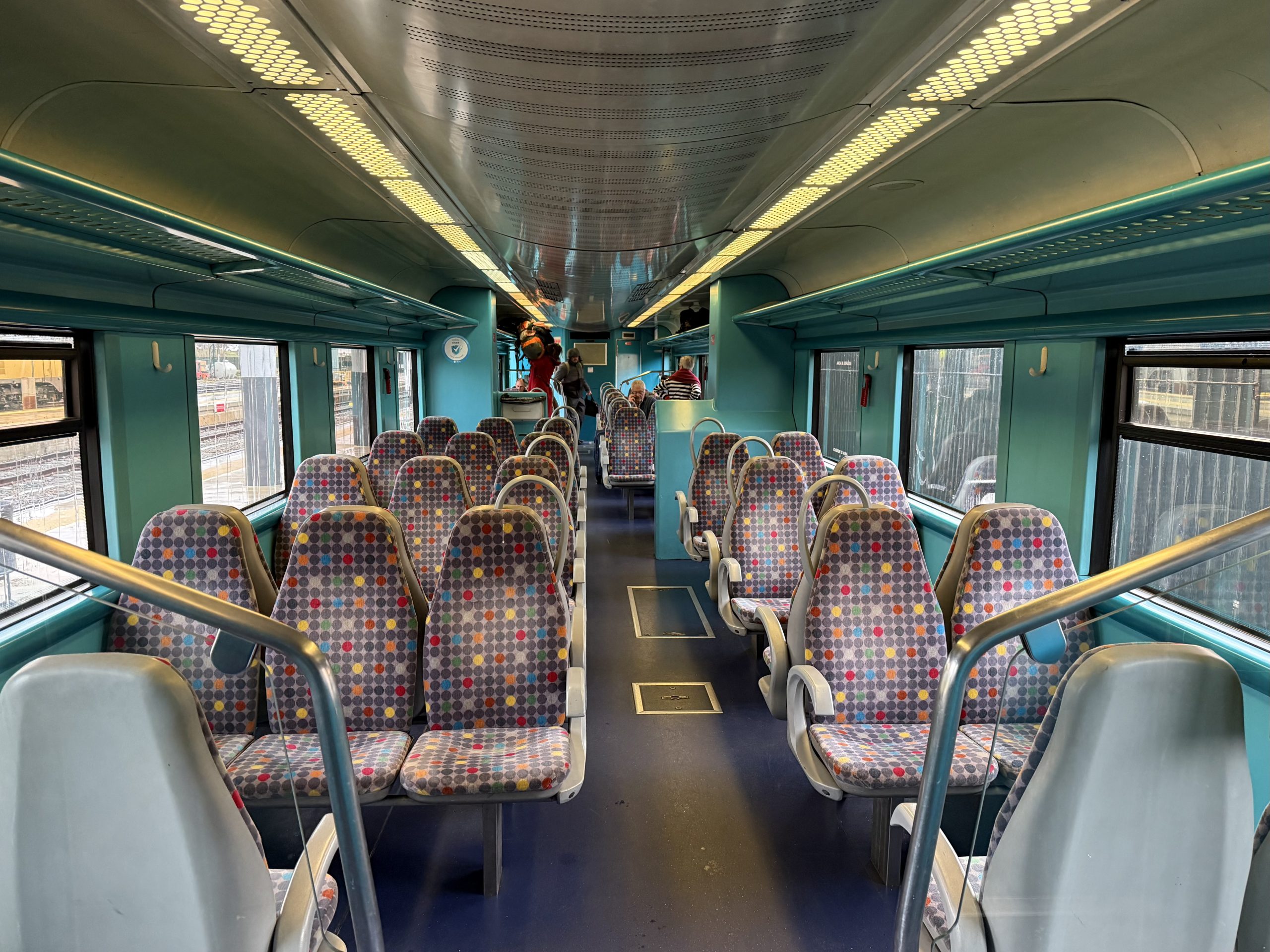 Within a relatively short time, and after one train had passed without stopping, a train pulled in for Lisbon. It turned out to be the one we were meant to get onto, which was even more delayed than ours was. I still didn’t have a reservation so settled down in the buffet car to wait for the train manager.