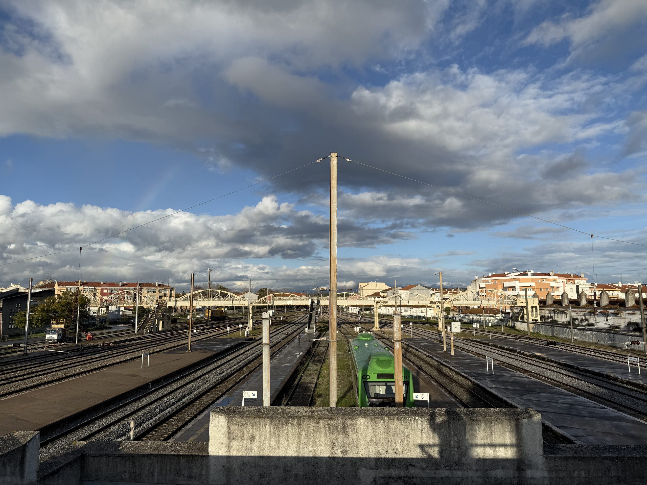 As we got closer to the end of this journey, we started losing time. This was the connection that I really needed to make, only 6 minutes and there were a few anxious looks around the increasingly busy carriage. Missing it meant a two hour delay. The problem was that most of the line is single track and services coming the other way were delayed and we had to wait for them. By the time we pulled into Entroncamento, we were almost 20 minutes late.
