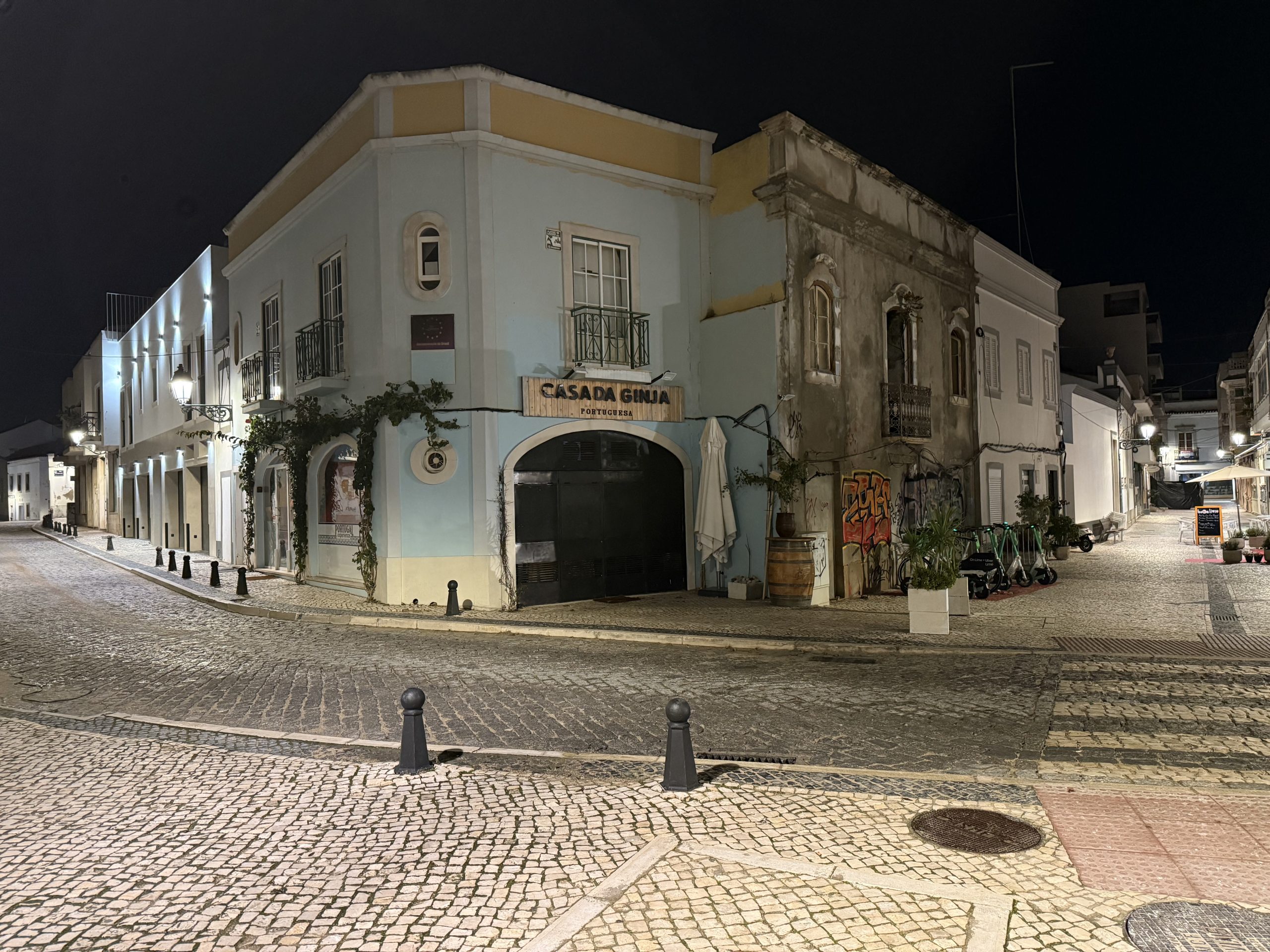 We arrived into Faro half an hour behind schedule. The first thing I noticed after getting off the train was that it was pleasantly warm, I certainly didn’t need a coat though by now it was well after 9pm. A couple of days earlier I’d been bitterly cold in Marseille at this time of the evening. The second thing I noticed was that this was a town with more than its fair share of derelict buildings.