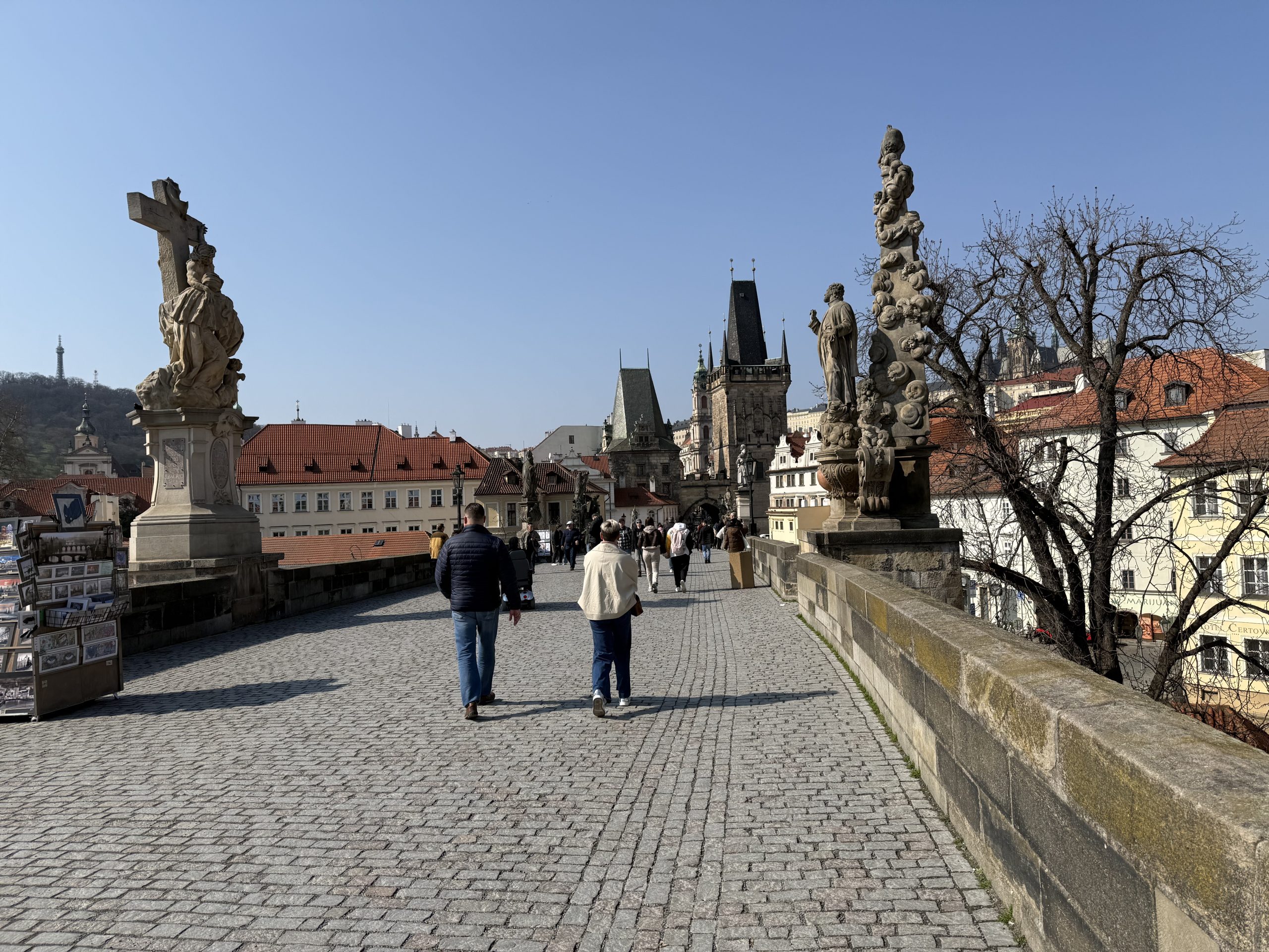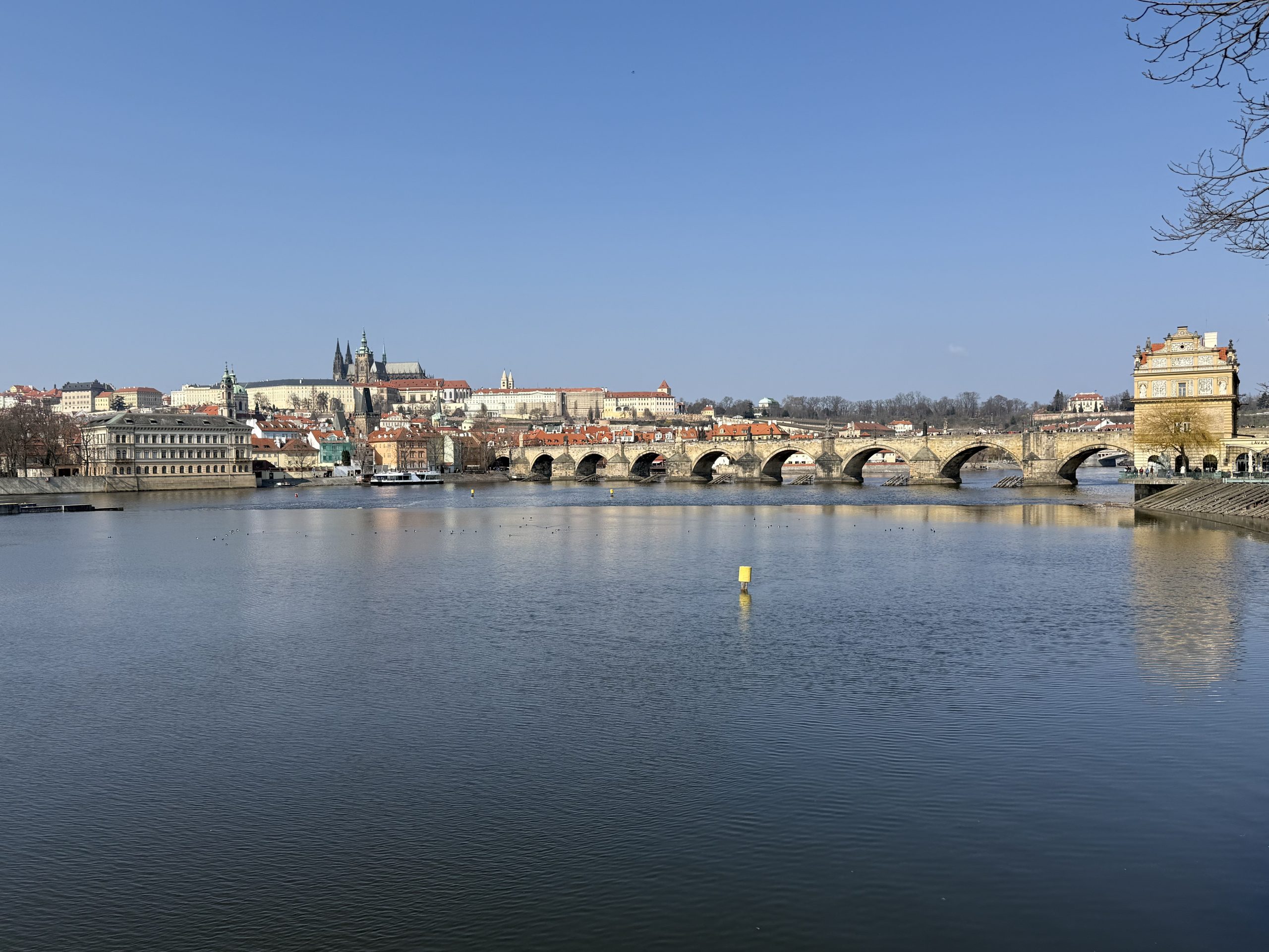One thing I had liked on my previous visit was the very retro trams that form the bulk of the local stock. I found one of these nearby and headed down to the riverside. I’d read that the famous Charles Bridge can get very busy so being there early seemed like a good idea. I walked through the city streets and along the riverbank to find it.