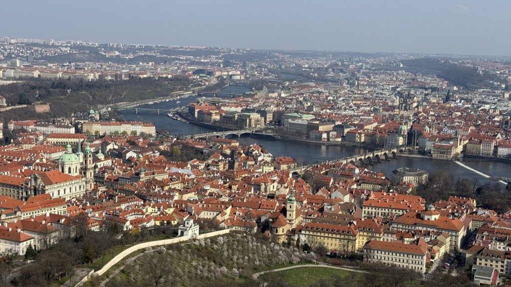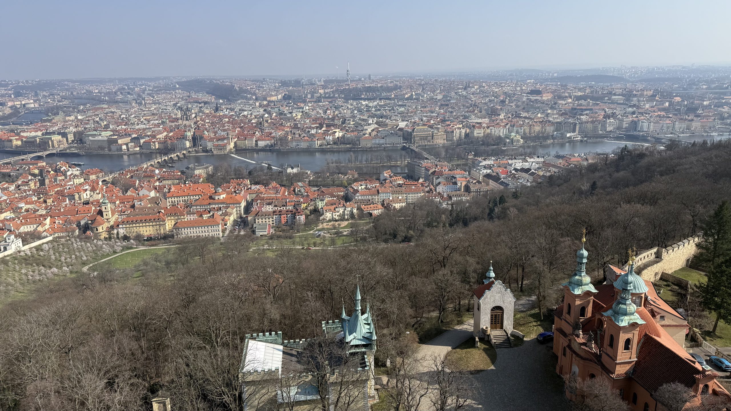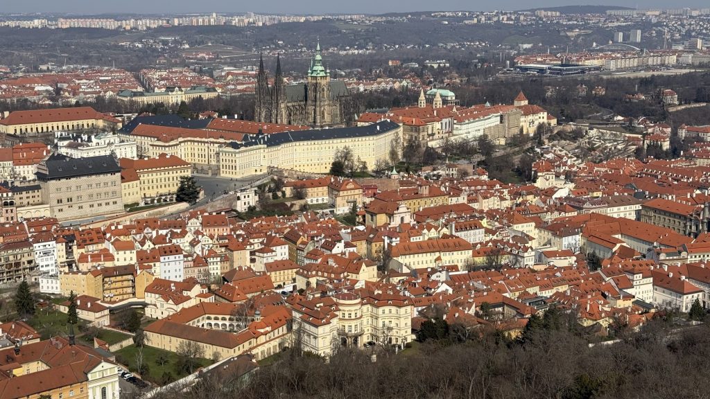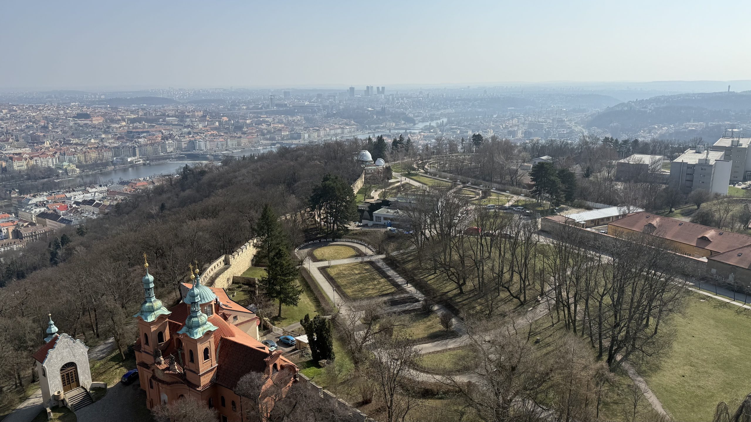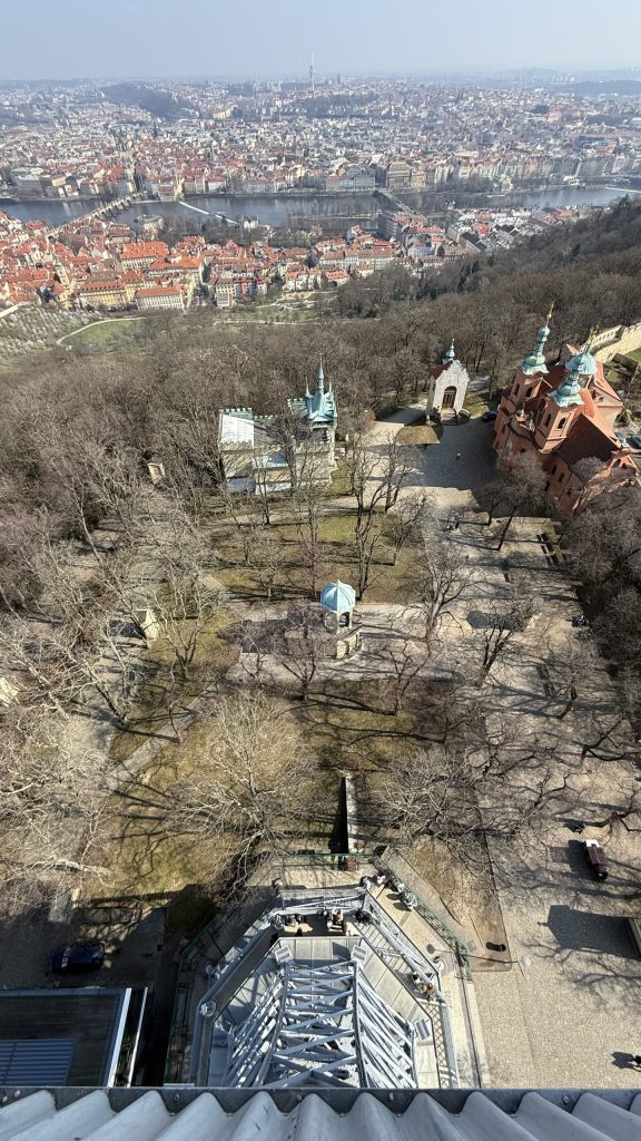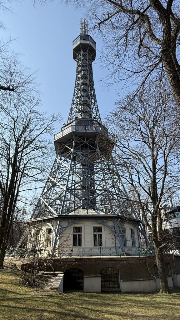 On the far side, I took another tram, just for one stop this time, to what looked like a good point to walk through the park up to the famous PetÅ™Ãn Lookout Tower, which I’d been told gives one of the best viewpoints of the city. There is a funicular railway up the hill but it has been closed for renovations for some time.