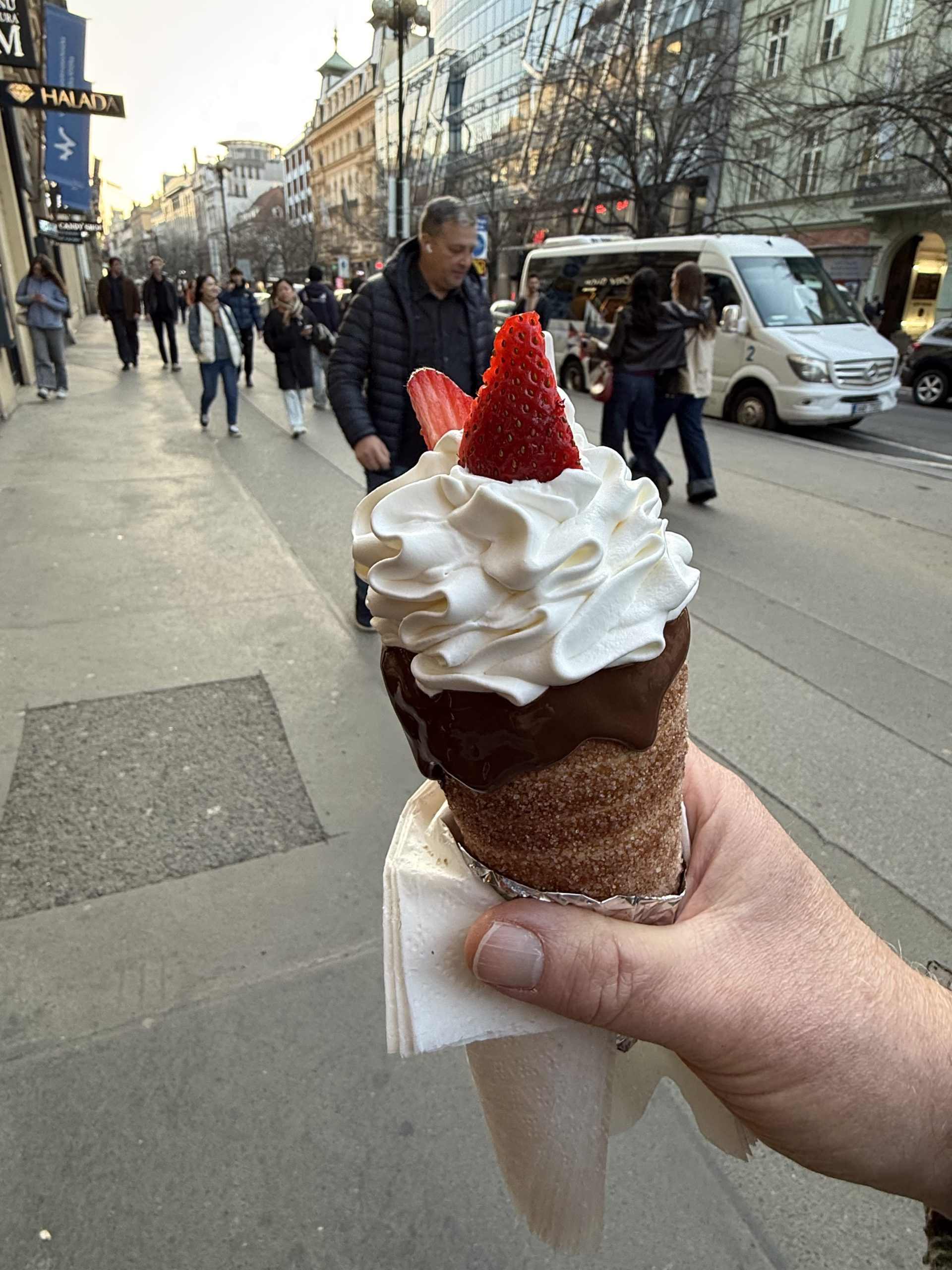 We stopped to have chimney cakes, which I’ve seen in Poland but apparently they’re a Czech thing. They were messy to eat but tasty; not as sweet as I thought they might be (a good thing!)
