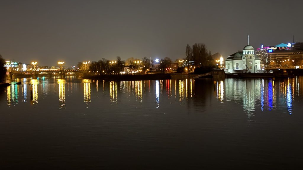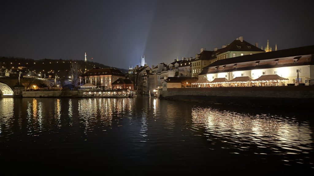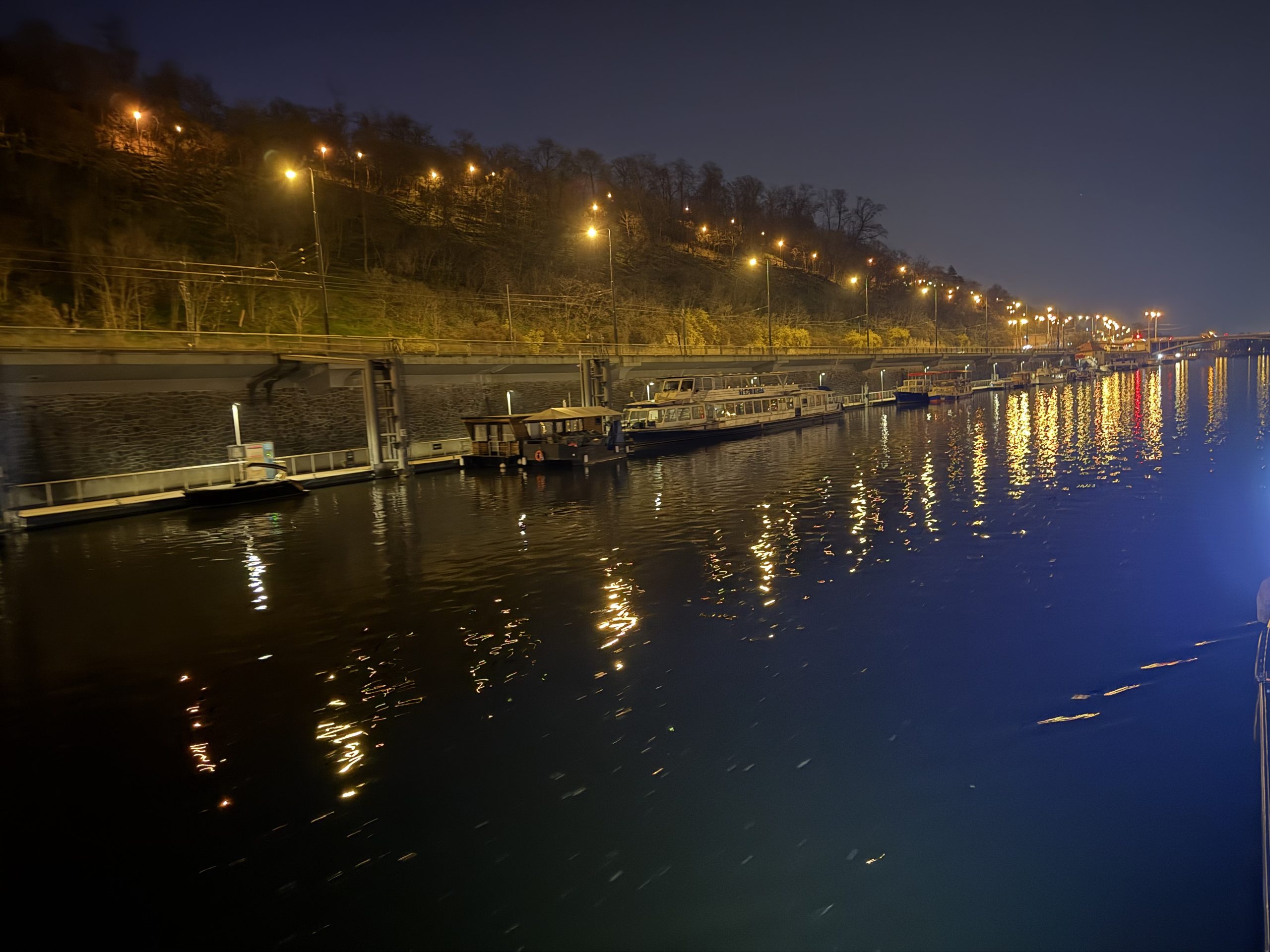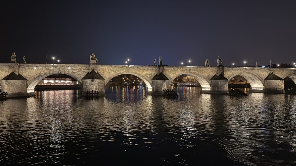 The city really does look lovely at night. We passed under the Charles Bridge twice then headed downstream as far as the next weir.