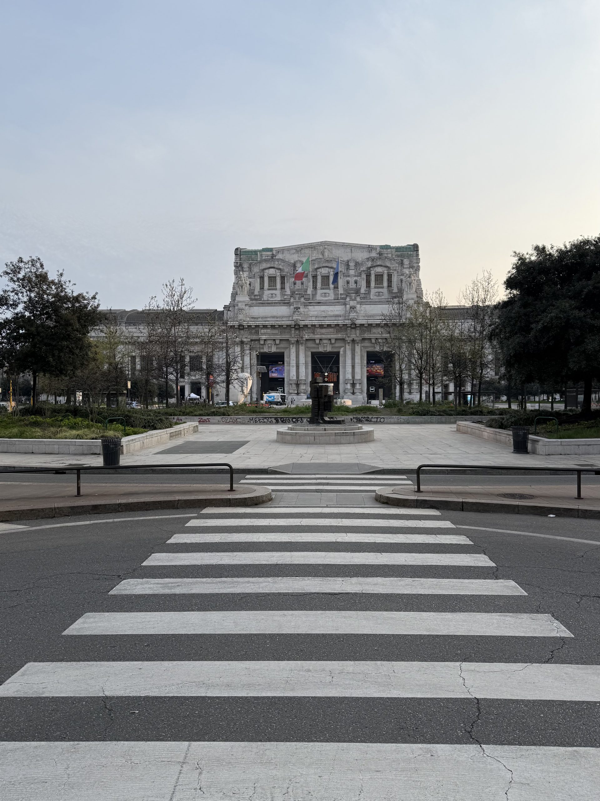 The streets of Milan were deserted at 7:30am. I walked to the station, picked up some orange juice and a croissant, then found my train.