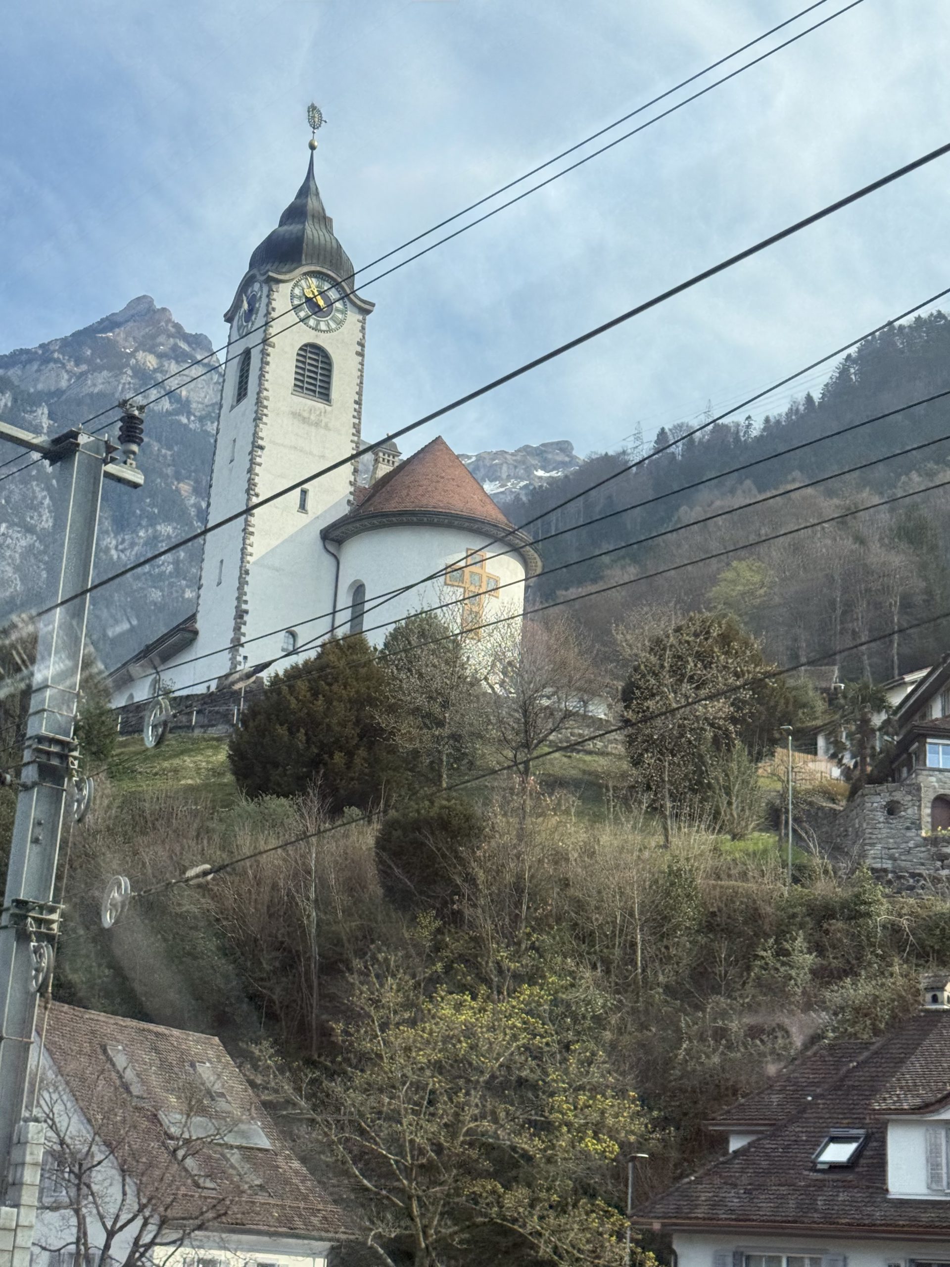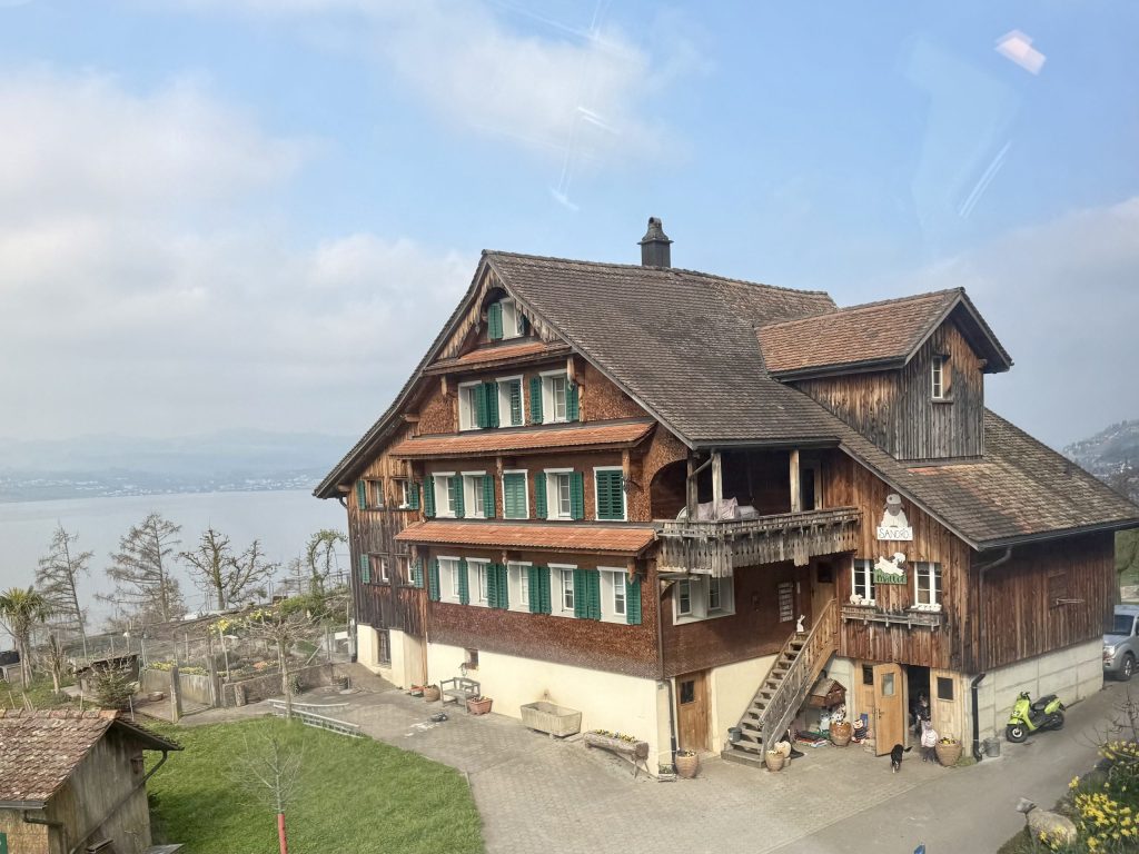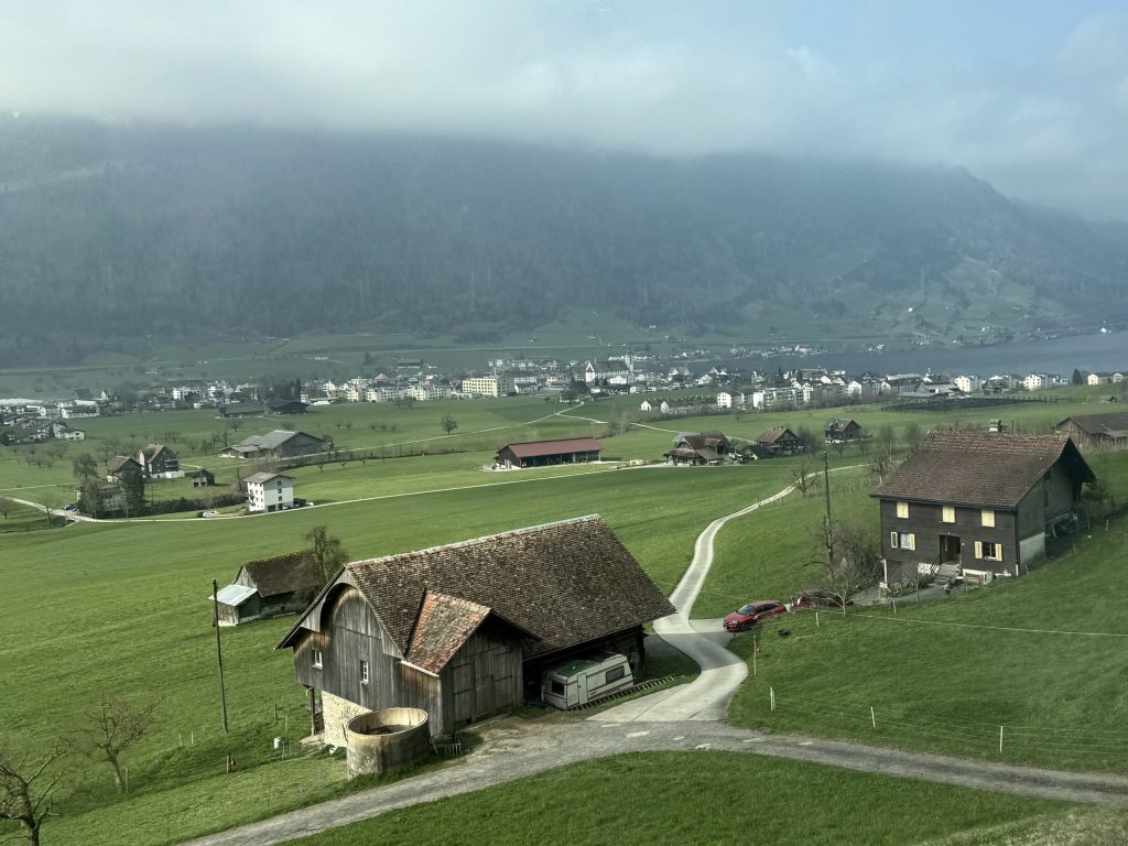 After passing through the tunnel at Gotthard, I was back in Switzerland. The views are again very pleasant. I spotted a number of rather lovely buildings as we went along.