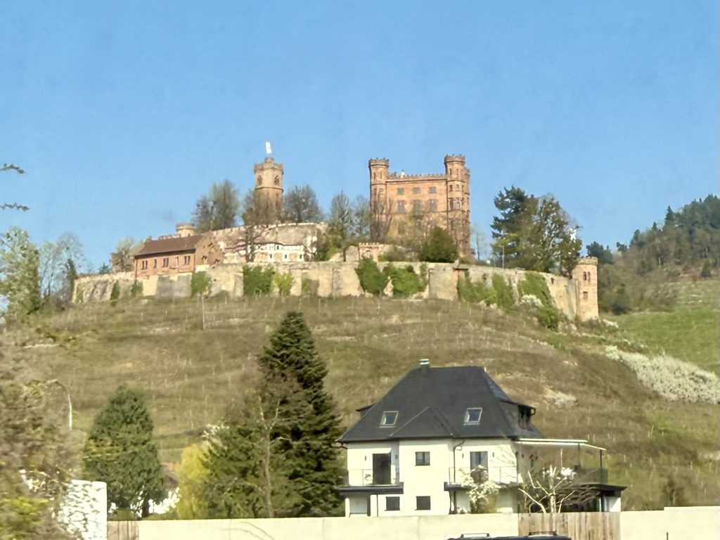 As we left Singen, we passed a series of hills with the remains of castles on top, within sight of each other. There were a few odd sights in this section. It was perhaps a bit nerdy to spot the metal sleepers at Engen, but I thought they were quite attractive. Schloss Ortenberg also caught my eye as we passed.