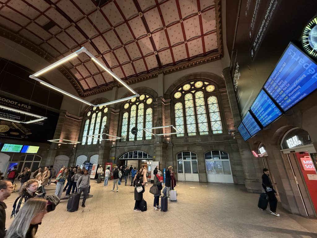 I’ve changed trains in Strasbourg before now but not stopped to look at it. My change of plan meant I had time to at least step outside the station, which is a really curious mix of old and new.