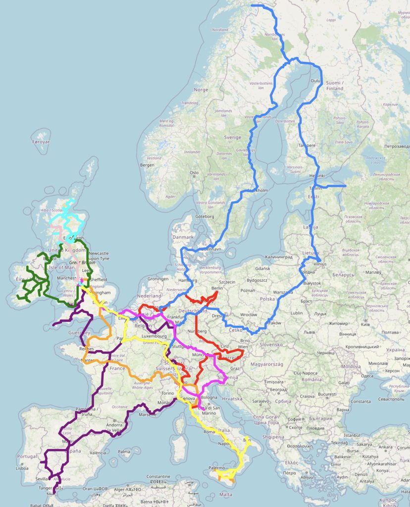 Railways routes use Open Railway Map data. Other routes are drawn. The map was last updated on 21st November 2025.